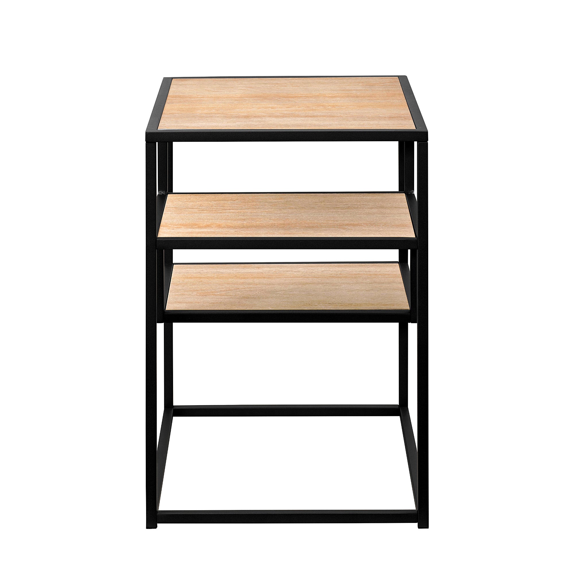 - Feature 1: Sleek, contemporary design Perfect for your urban or modern home Two floating, fixed shelves for additional display space Made with powder-coated steel, warp-resistant MDF, and durable laminate Display in your room, living room, or home office Pair with the matching coffee table and entry console Quick and easy assembly Ships ready-to-assemble with step-by-step instructions