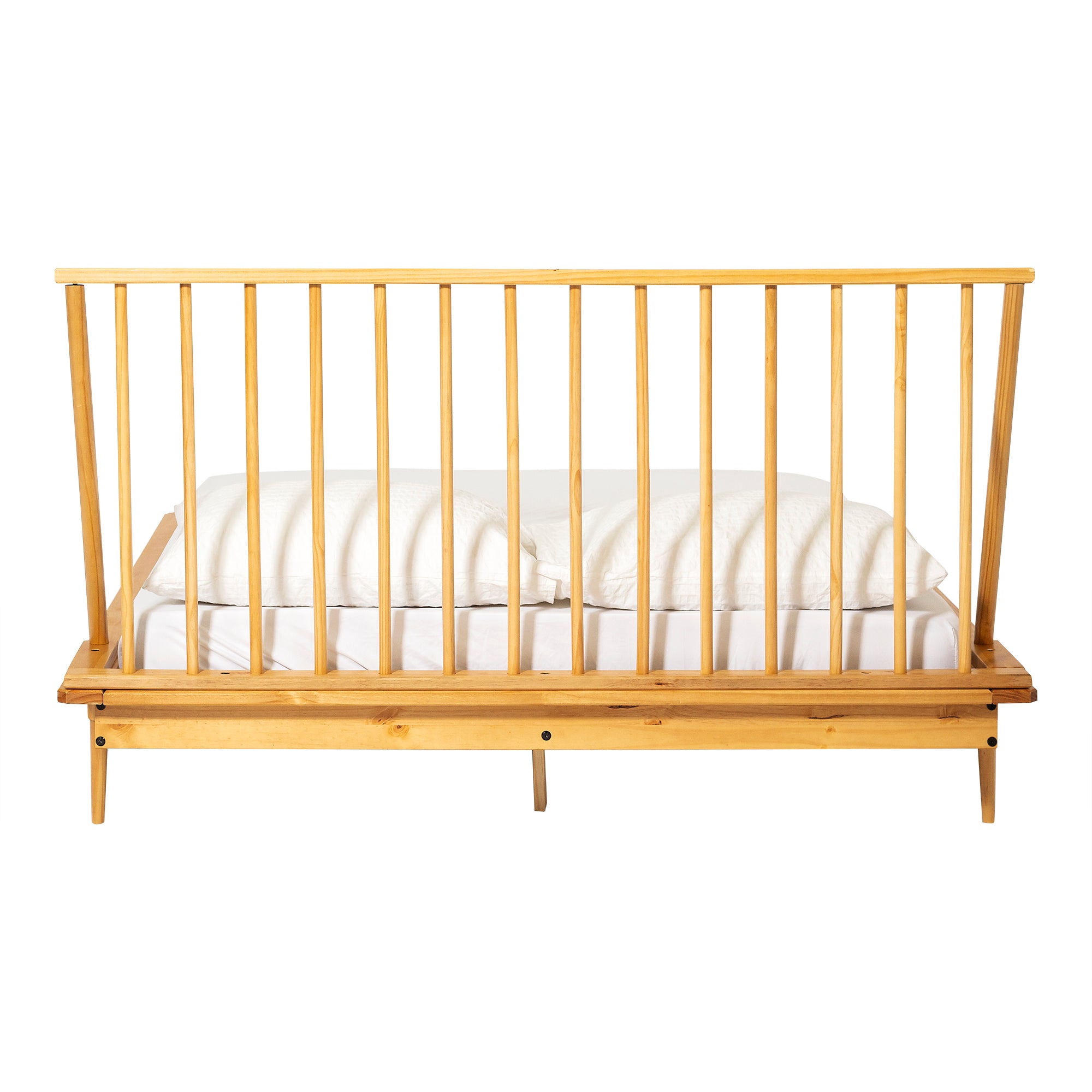 - Clean-lined spindle headboard
