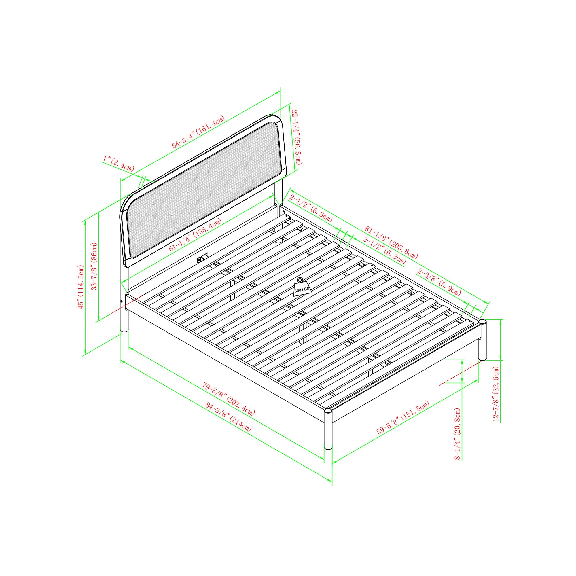 - Dimensions: NRUB5CNA Queen Platform Bed with Rattan Headboard Insert - 45" H x 84.38" L x 64.75" W