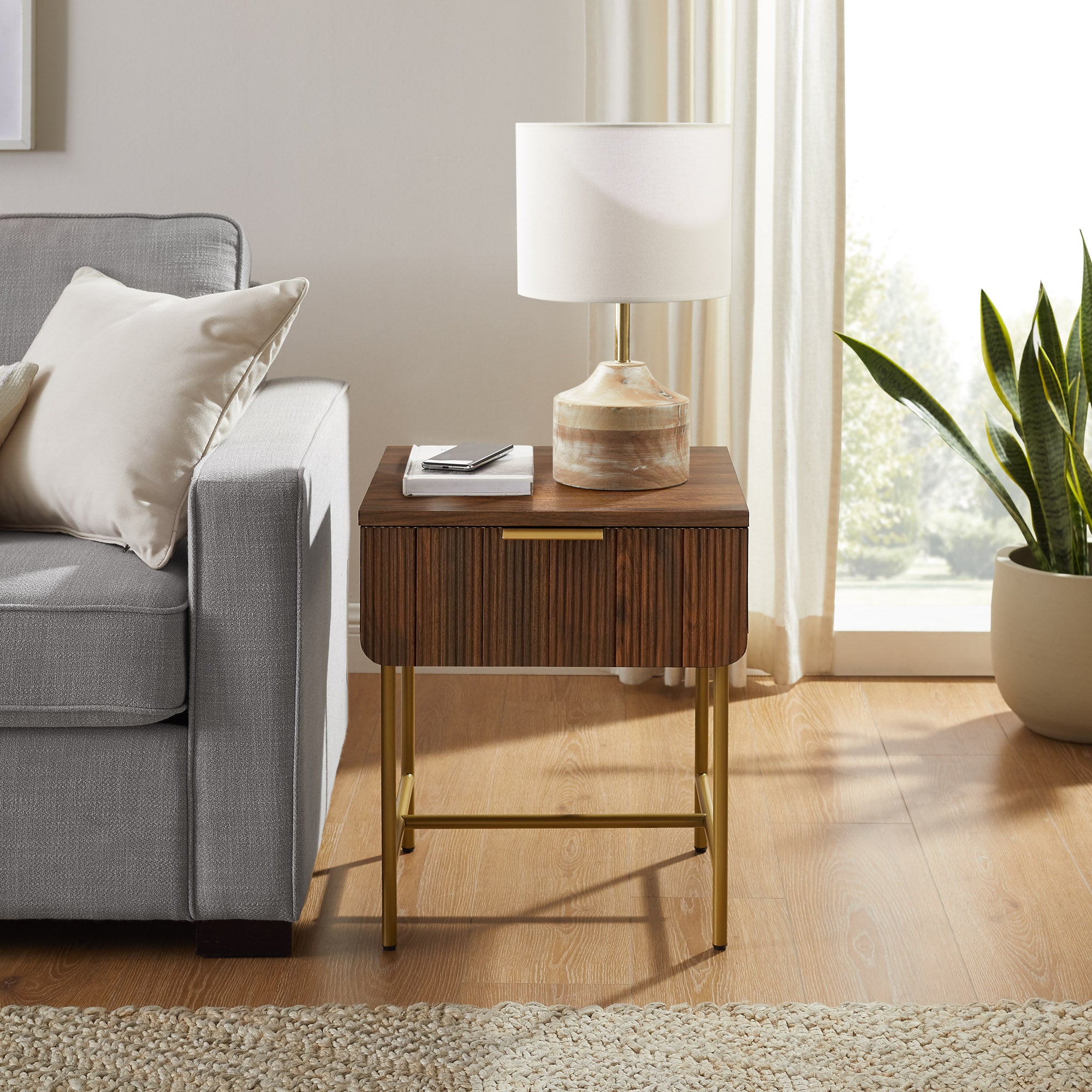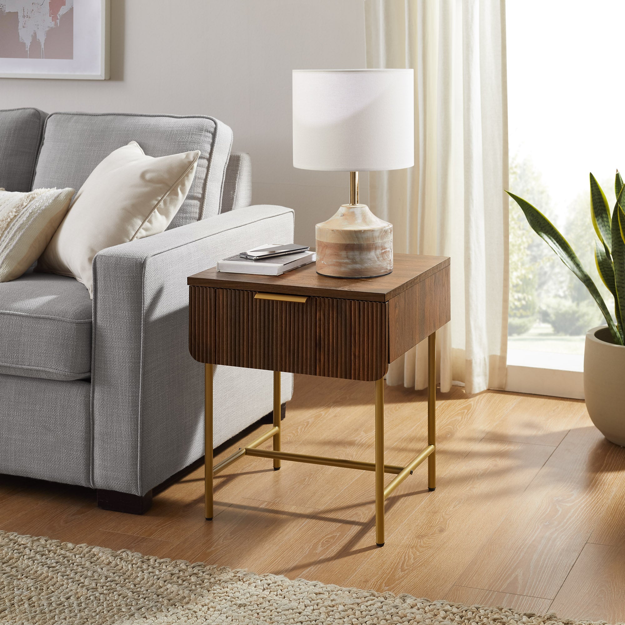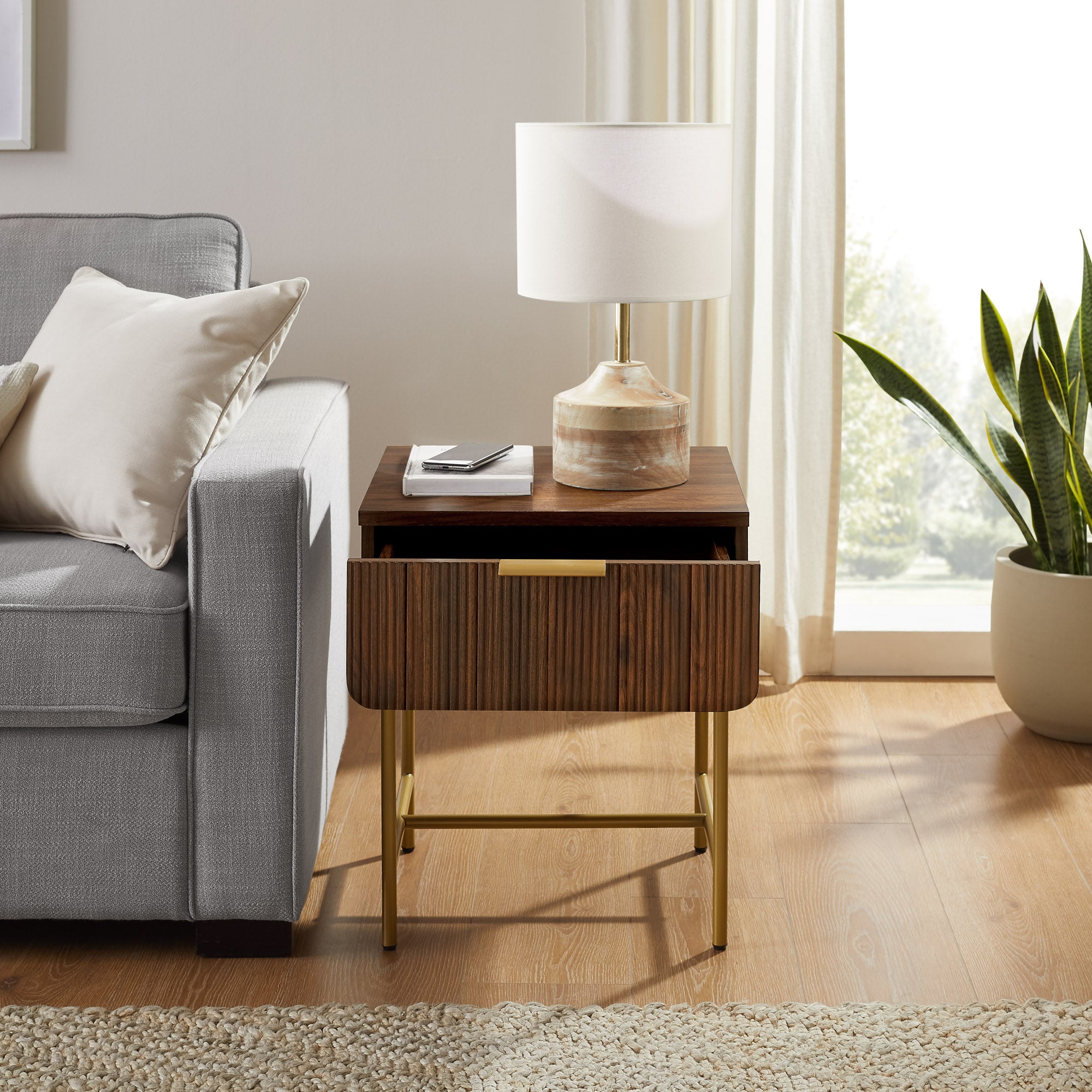 - Feature 3: Fluted drawer front offers a contemporary look