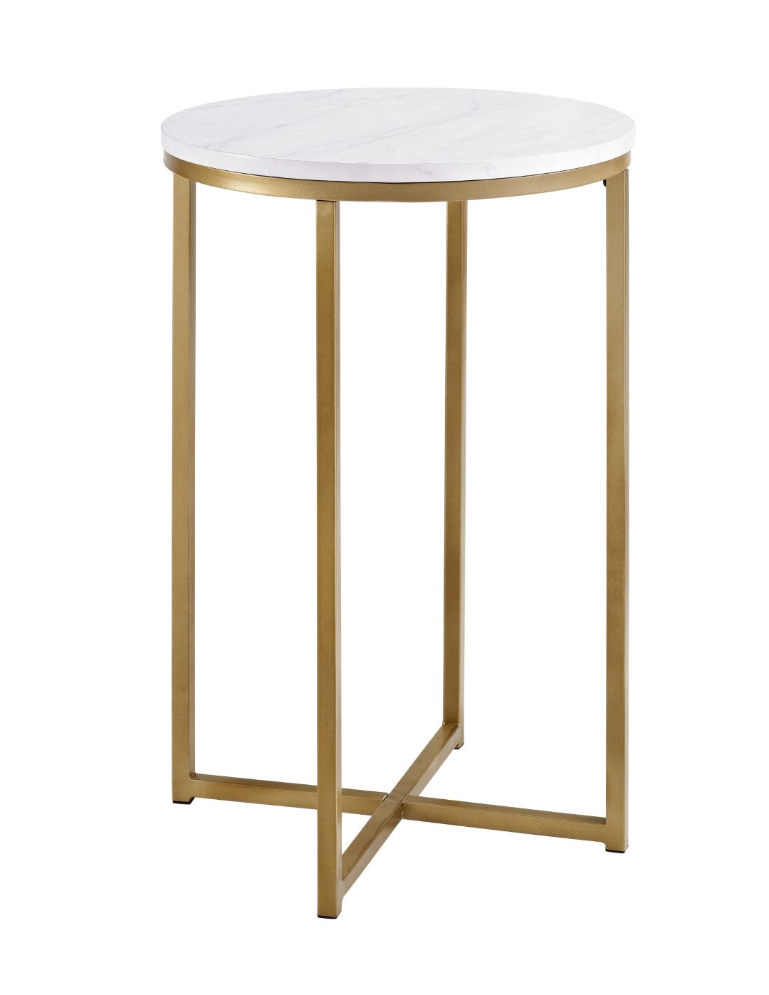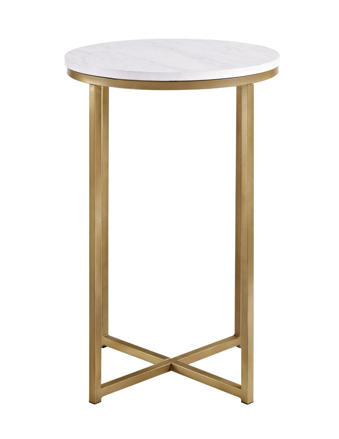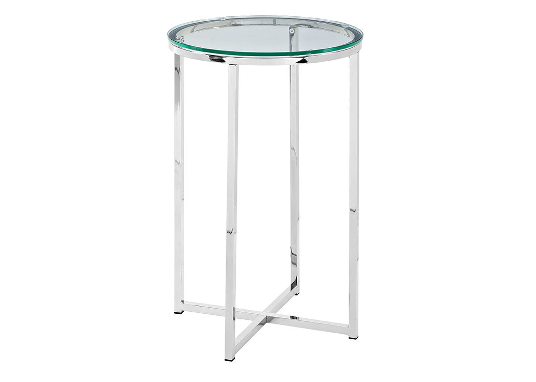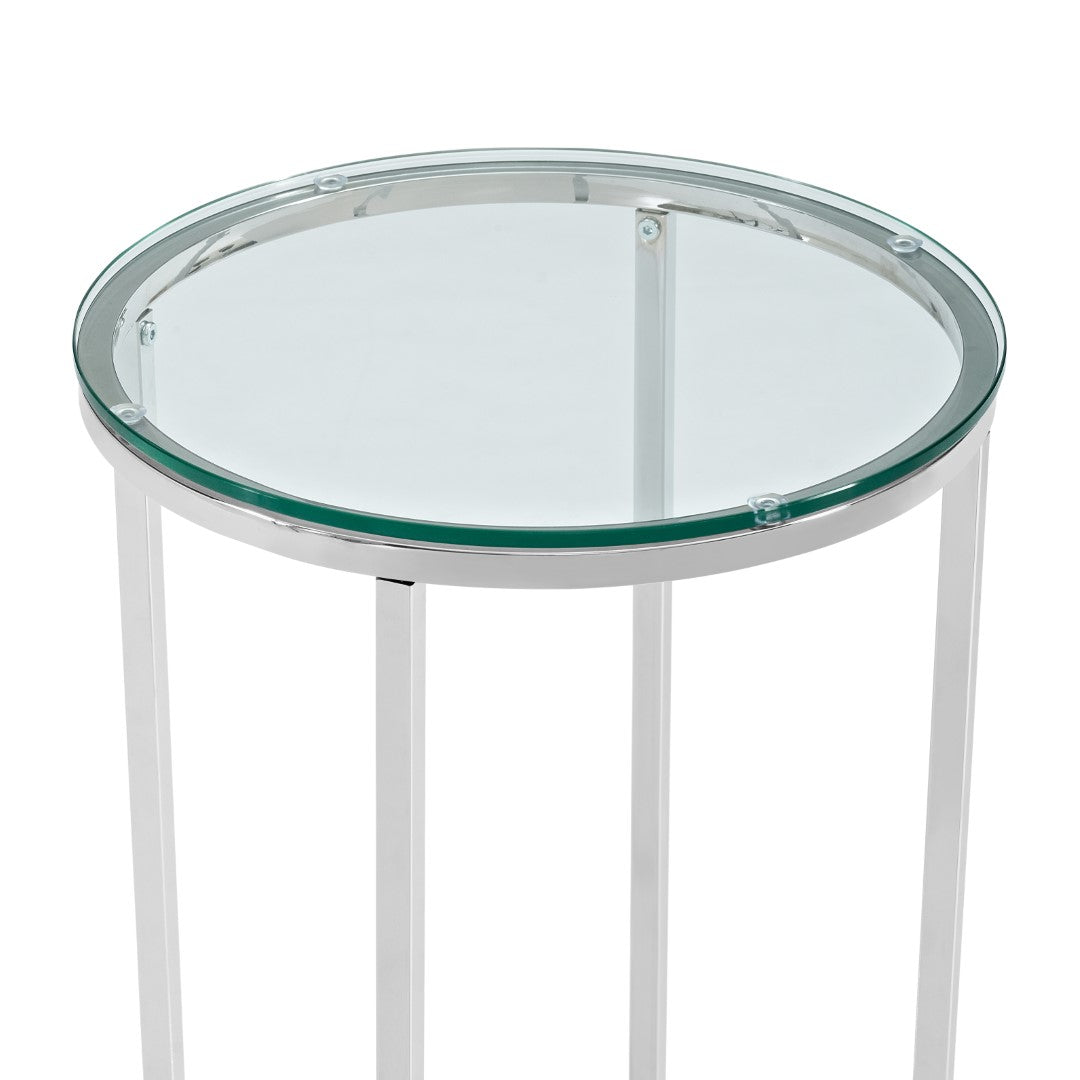 Classy yet convenient, this round side table is sure to add an extra element of elegance to your living room or anywhere you want it in your home. Use as an accent table if you pair it with our matching round coffee table or alone as an end table for your own unique arrangement. Composed of a sturdy metal frame for a chic and glam touch in your home.