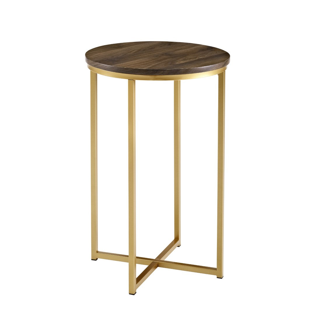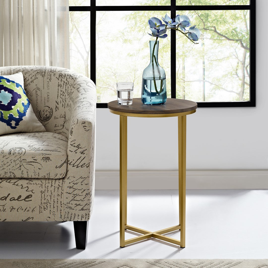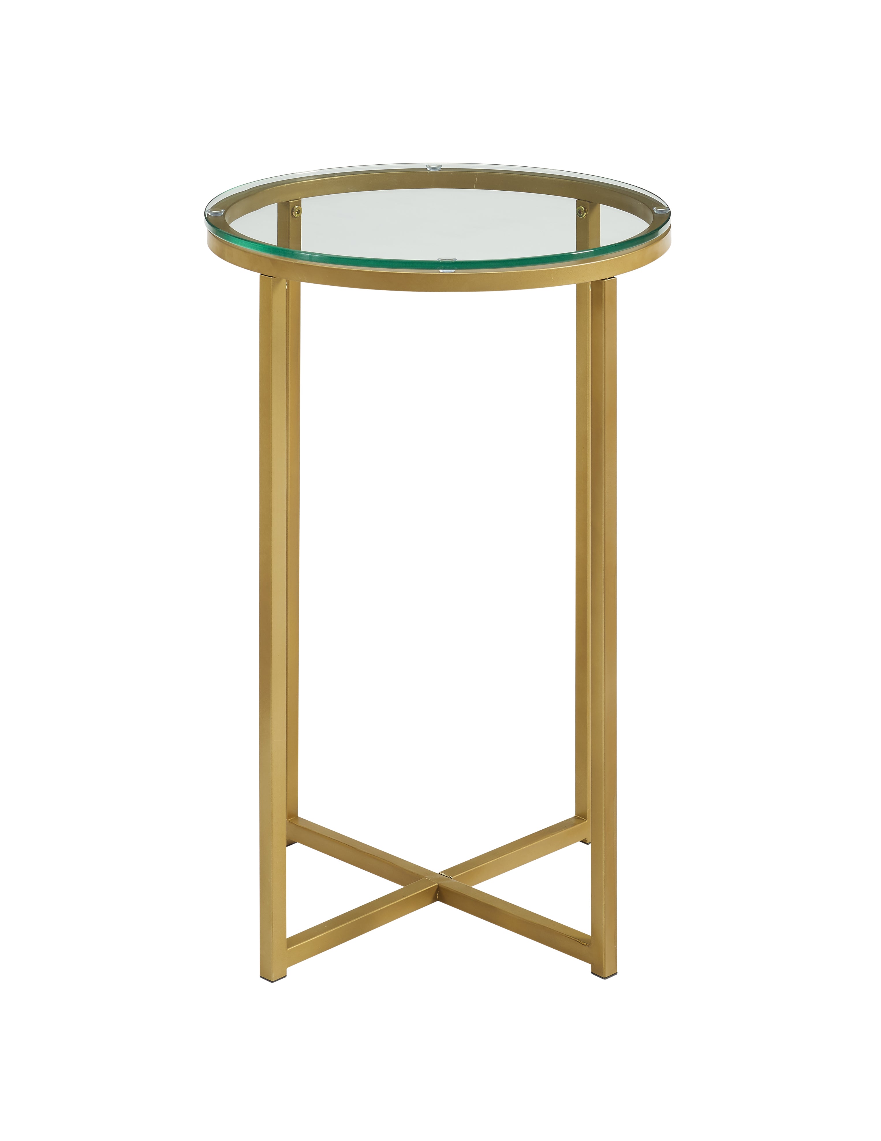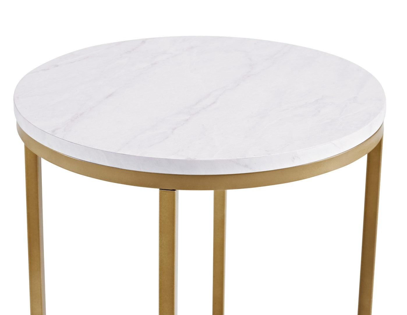 Classy yet convenient, this round side table is sure to add an extra element of elegance to your living room or anywhere you want it in your home. Use as an accent table if you pair it with our matching round coffee table or alone as an end table for your own unique arrangement. Composed of a sturdy metal frame for a chic and glam touch in your home.