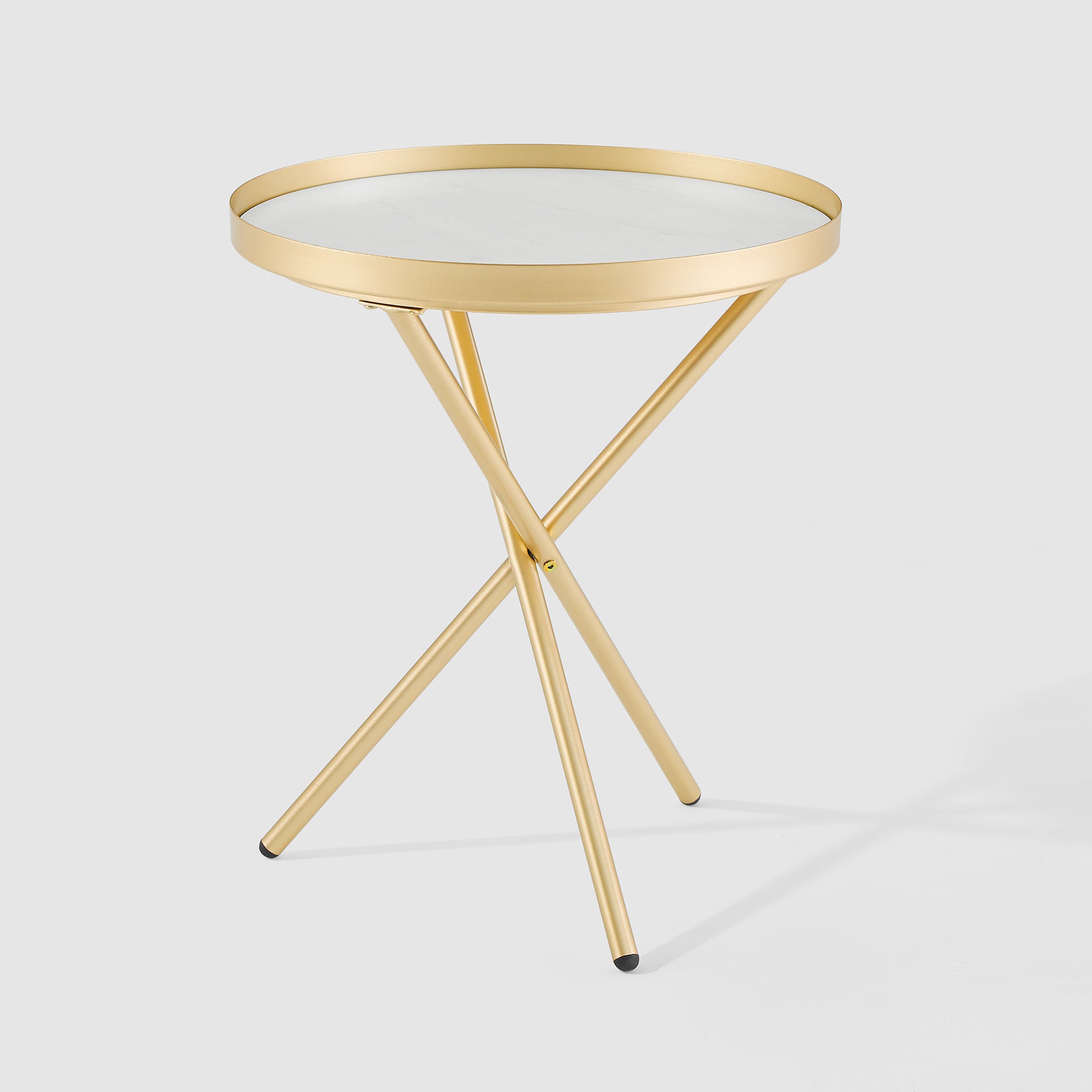 - Feature 1: Minimal and lightweight design perfect for apartments and small spaces | Luxe, faux marble gallery top | Sanded, gold-painted metal base for a modern aesthetic | Made with painted steel, warp-resistant MDF, and durable laminate | Glossy, moisture-resistant melamine surface | Use as a serving tray, side table, or accent piece | Quick and easy assembly | Ships ready-to-assemble with step-by-step instructions