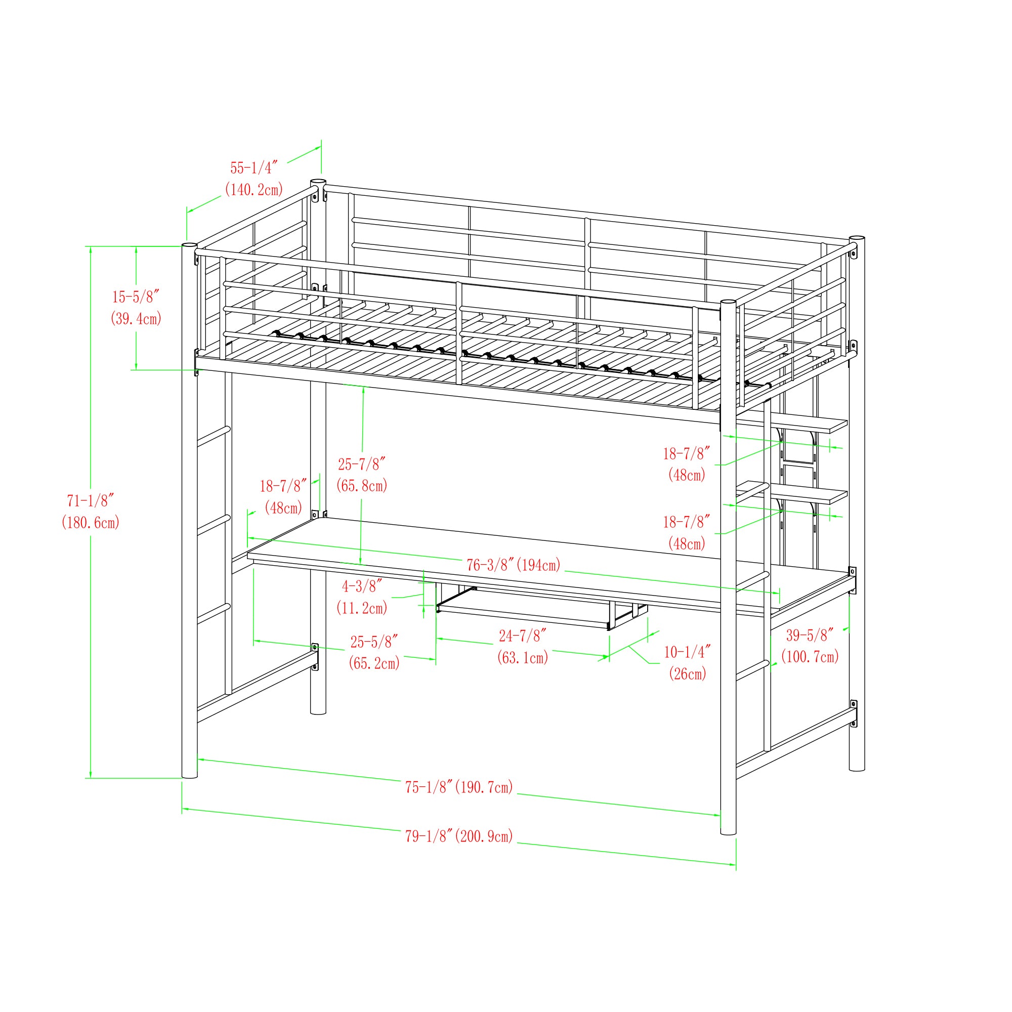 - Dimensions: BLWSSL Twin Metal Loft Bed Workstation -