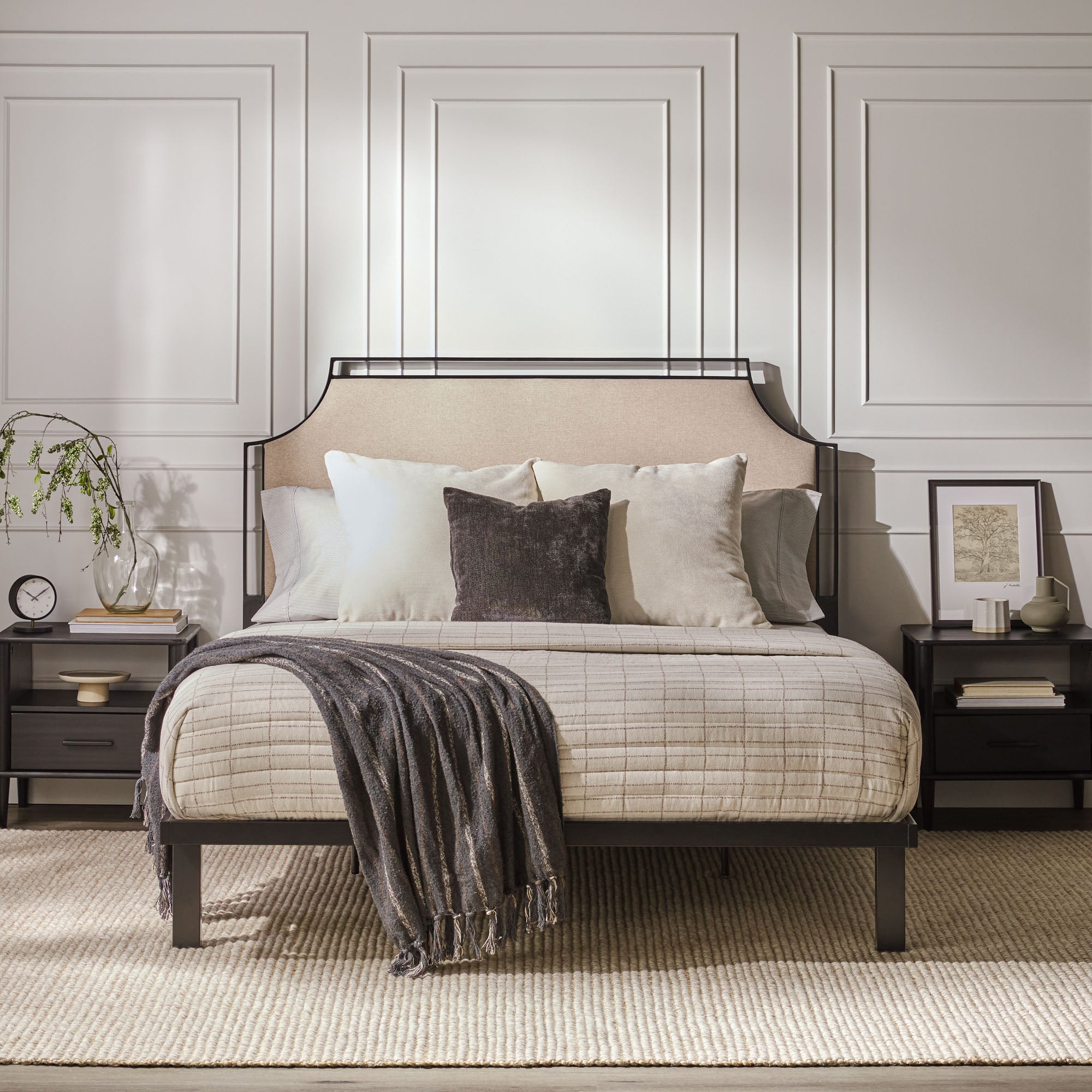 - Color: MMIB5CTN Upholstered Traditional Metal Queen Bed - Tan