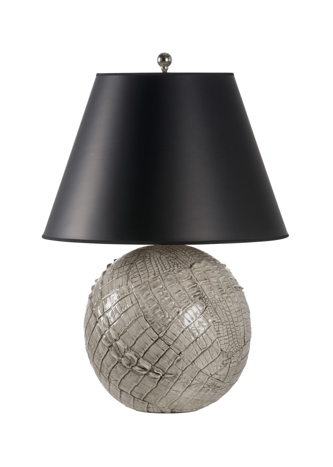 Elevate your interior with this handcrafted ceramic table lamp, a refined blend of Italian artisanry and modern sophistication. The Ally Gray Lamp's detailed alligator-skin texture and glossy gray glaze create a tactile, high-end finish that becomes a focal point whether illuminated or off. Its black empire shade provides directed, ambient lighting ideal for living rooms, bedrooms, or entryways, while the compact footprint makes it versatile for both large and small surfaces.