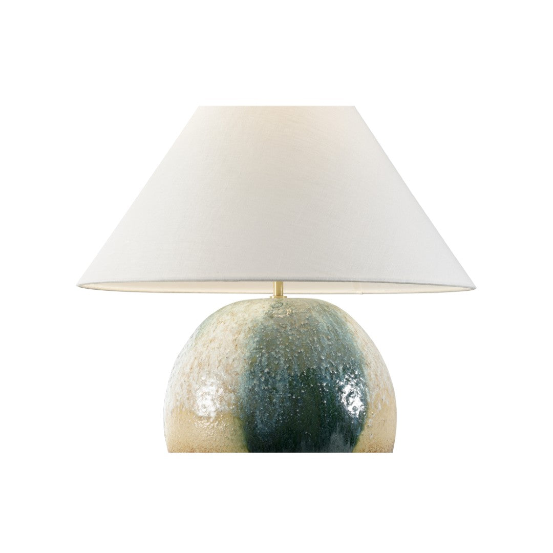 - Shade: Refined rolled-edge linen shade provides a soft, diffused light and complements the ceramic base.