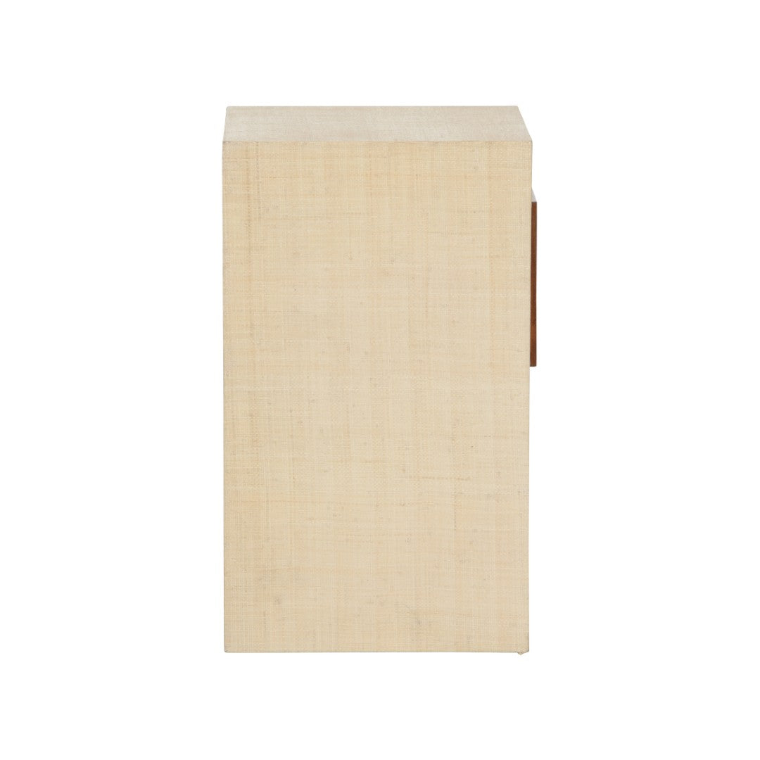 - Finish: Warm walnut stain with natural raffia for a calming, neutral color palette