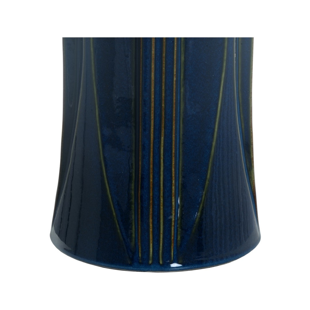 A striking blend of modern silhouette and artisanal detail, this ceramic table lamp brings both color and calm to living rooms, bedrooms, or entryways. Its deep blue glazed body and crisp white drum shade create a refined focal point that pairs easily with contemporary or transitional decor while providing a warm, ambient light.