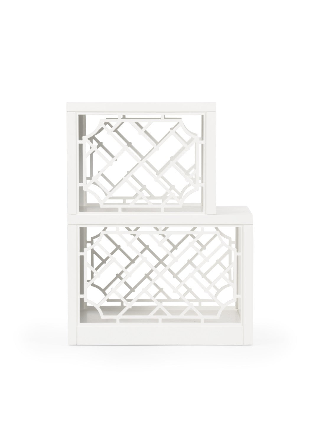 Elevate any room with this elegant Chippendale-style side shelf table, finished in a crisp Chantilly Lace with a green back for a fresh, contemporary twist on a classic design. Its compact profile and timeless silhouette make it perfect as an accent piece beside sofas, beds, or in entryways—offering both decorative appeal and practical surface/storage space.
