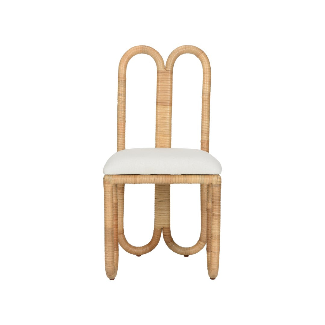 Bring a relaxed, coastal elegance to your dining area with the Cuixmala Dining Chair. Its airy silhouette—defined by a looped woven rattan backrest and legs—creates an inviting, natural aesthetic while the plush cushioned seat ensures comfortable, everyday seating. Thoughtfully crafted for durability and style, this chair complements coastal, tropical, and bohemian interiors.