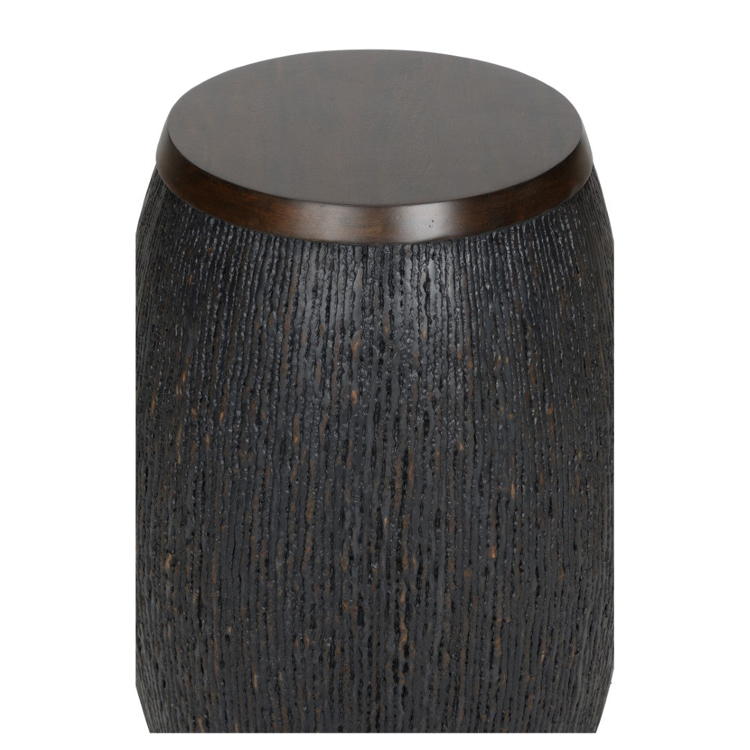 Bring a touch of organic texture and refined warmth to your living area with the Dracus Drinks Table. Its drum silhouette and intricately textured surface highlight the natural patterns of coco twigs, while a rich dark finish and walnut accents lend an elegant, contemporary character. Compact and versatile, this accent table works equally well beside seating, in entryways, or as a decorative display surface.