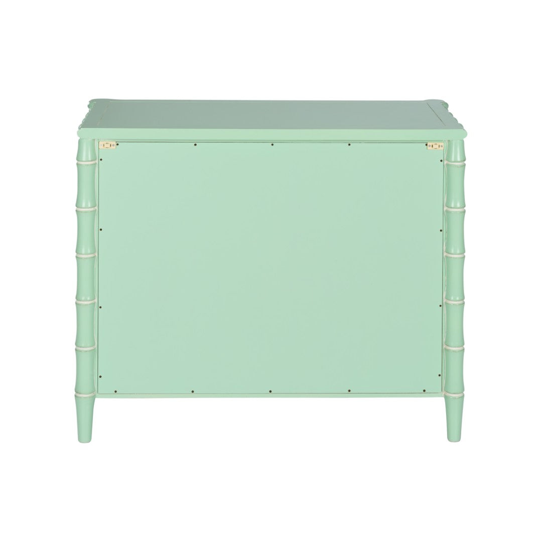 - Coastal-inspired design featuring a bamboo motif and seafoam/white glaze finish for a light, airy aesthetic