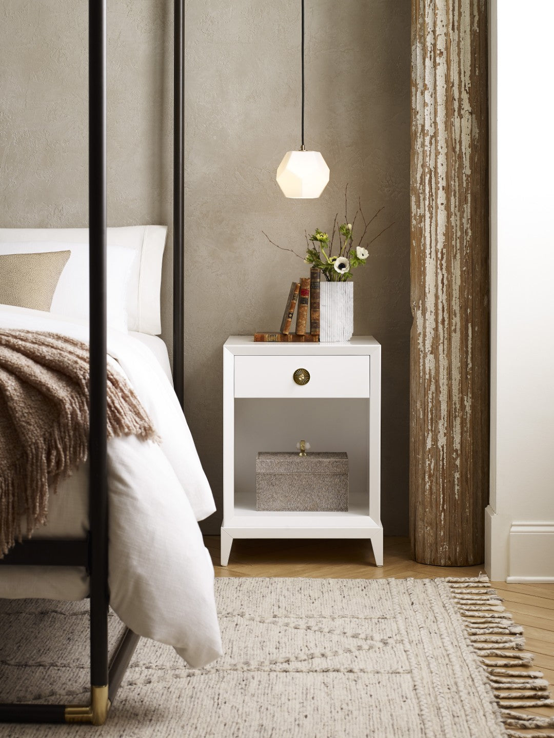 - Material & Finish: Hand-finished antique brass hardware with black/white glass elements for contrast and depth