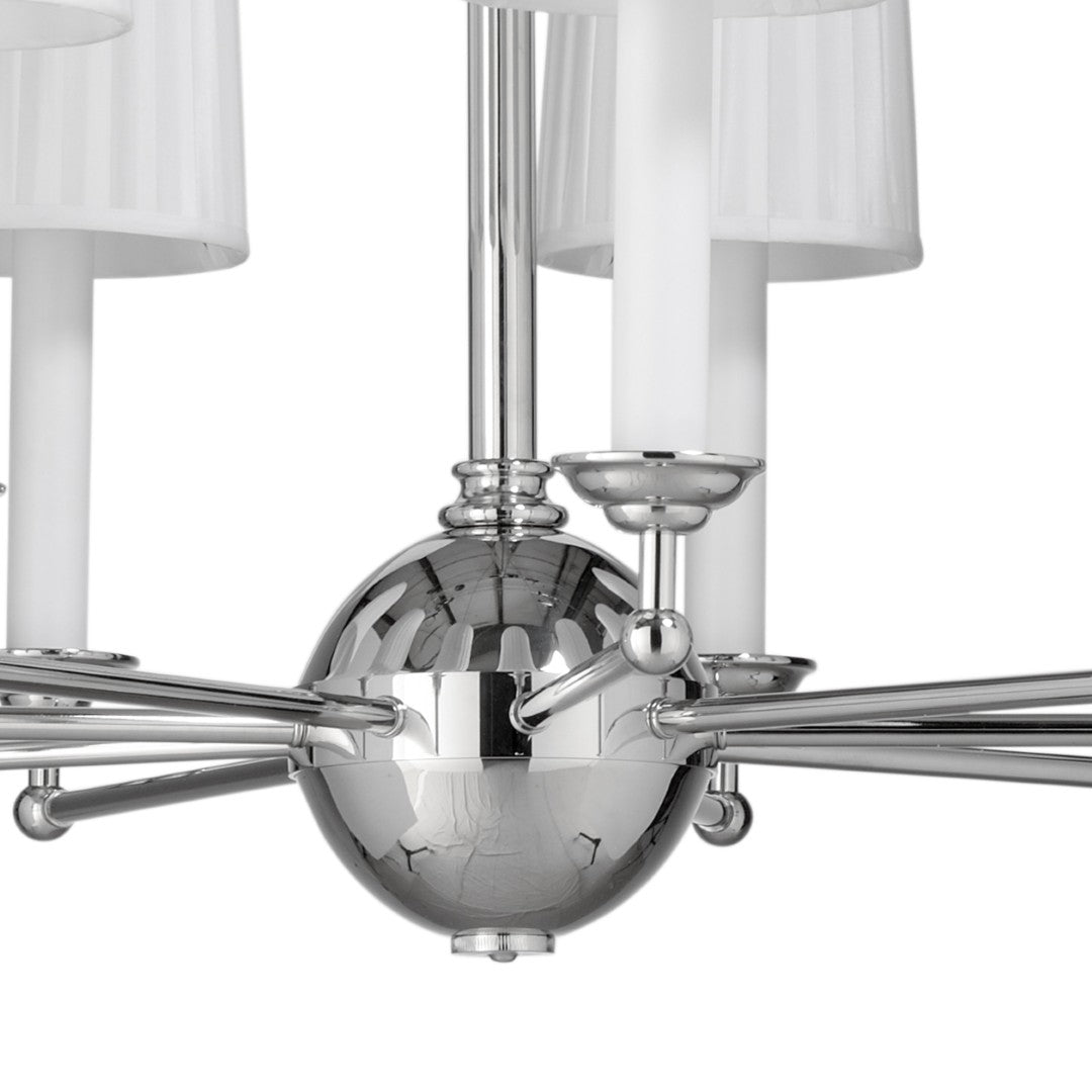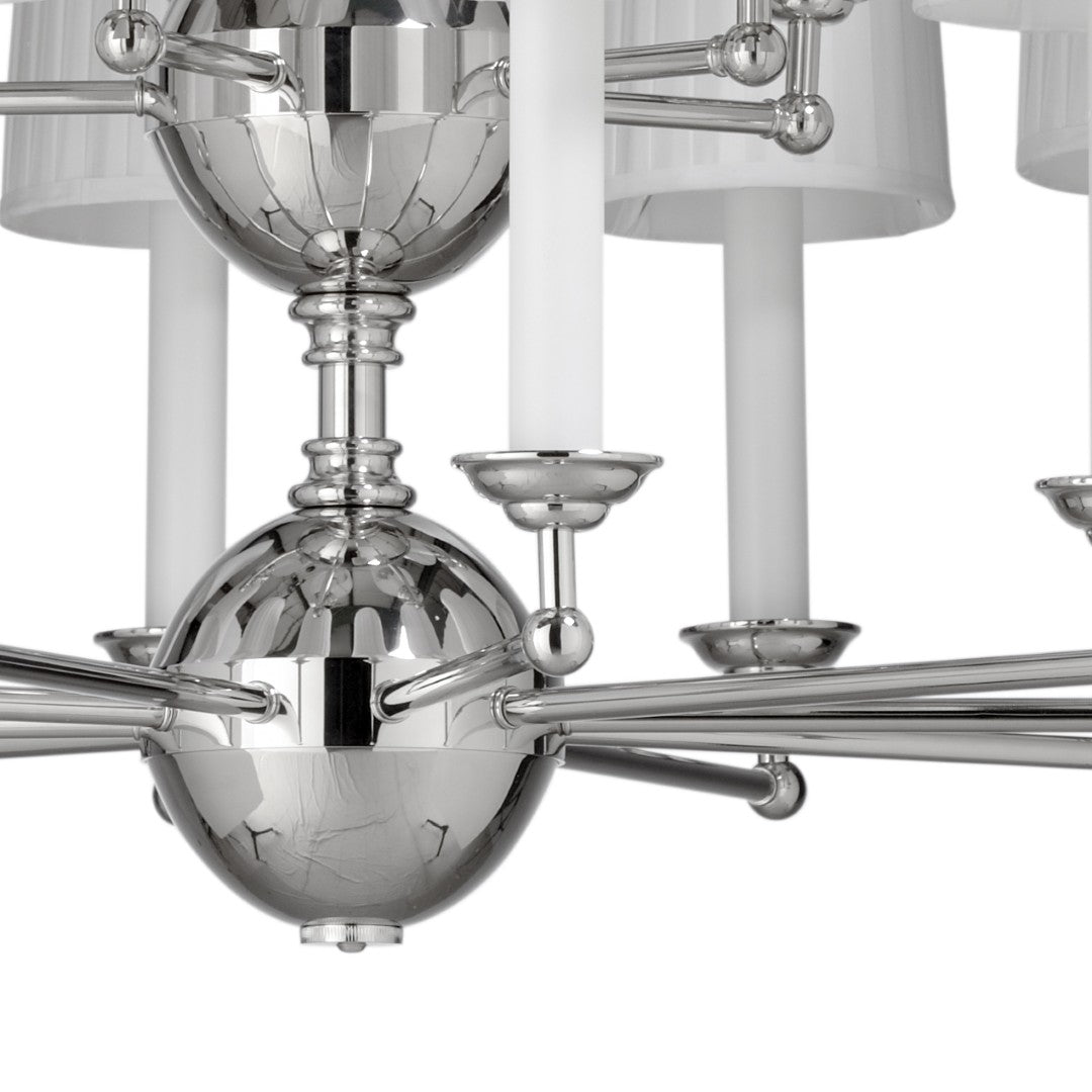 - Finish & Shades: Polished nickel hardware paired with off-white silkette shades for a soft, sophisticated glow and easily coordinated décor.