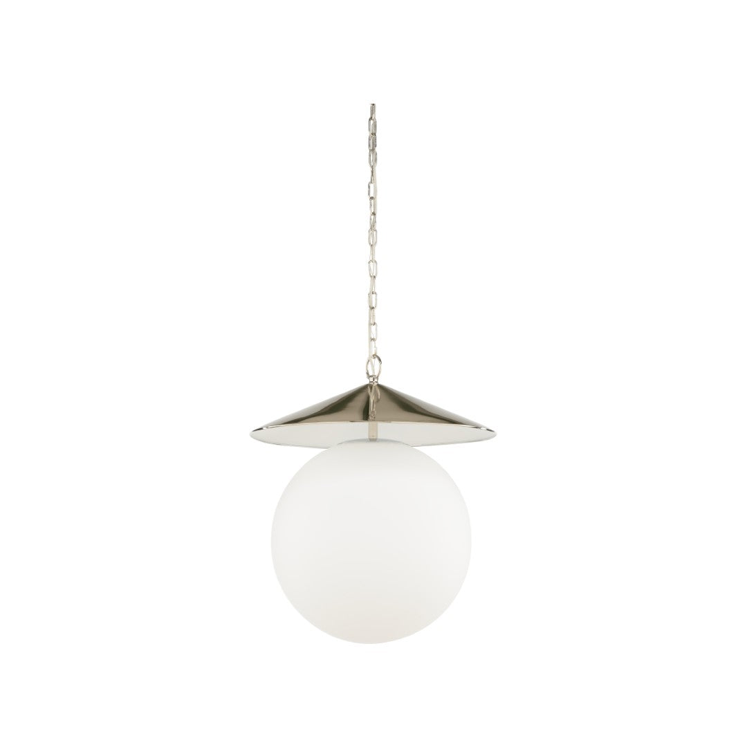 - Finish & Shade: Polished nickel conical detail paired with a white milk glass (or milk-finish) shade for soft, even diffusion