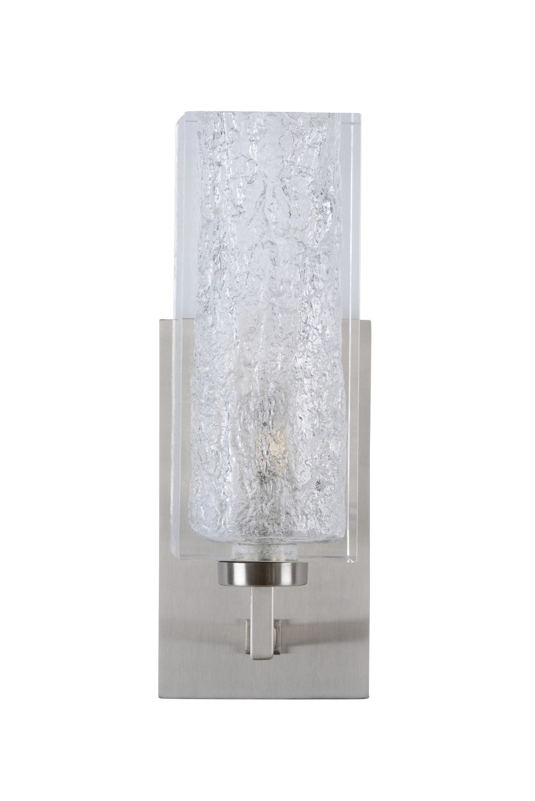 Illuminate your space with the Lucallan sconce — a refined, modern wall light that combines soft ambient glow with sculptural texture. The single candle socket is encased in a block of ice-textured acrylic that diffuses light for a warm, inviting atmosphere, while the satin nickel finish adds understated elegance. Ideal for hallways, bathrooms, or paired on either side of a mirror or artwork, this sconce balances form and function for contemporary interiors.