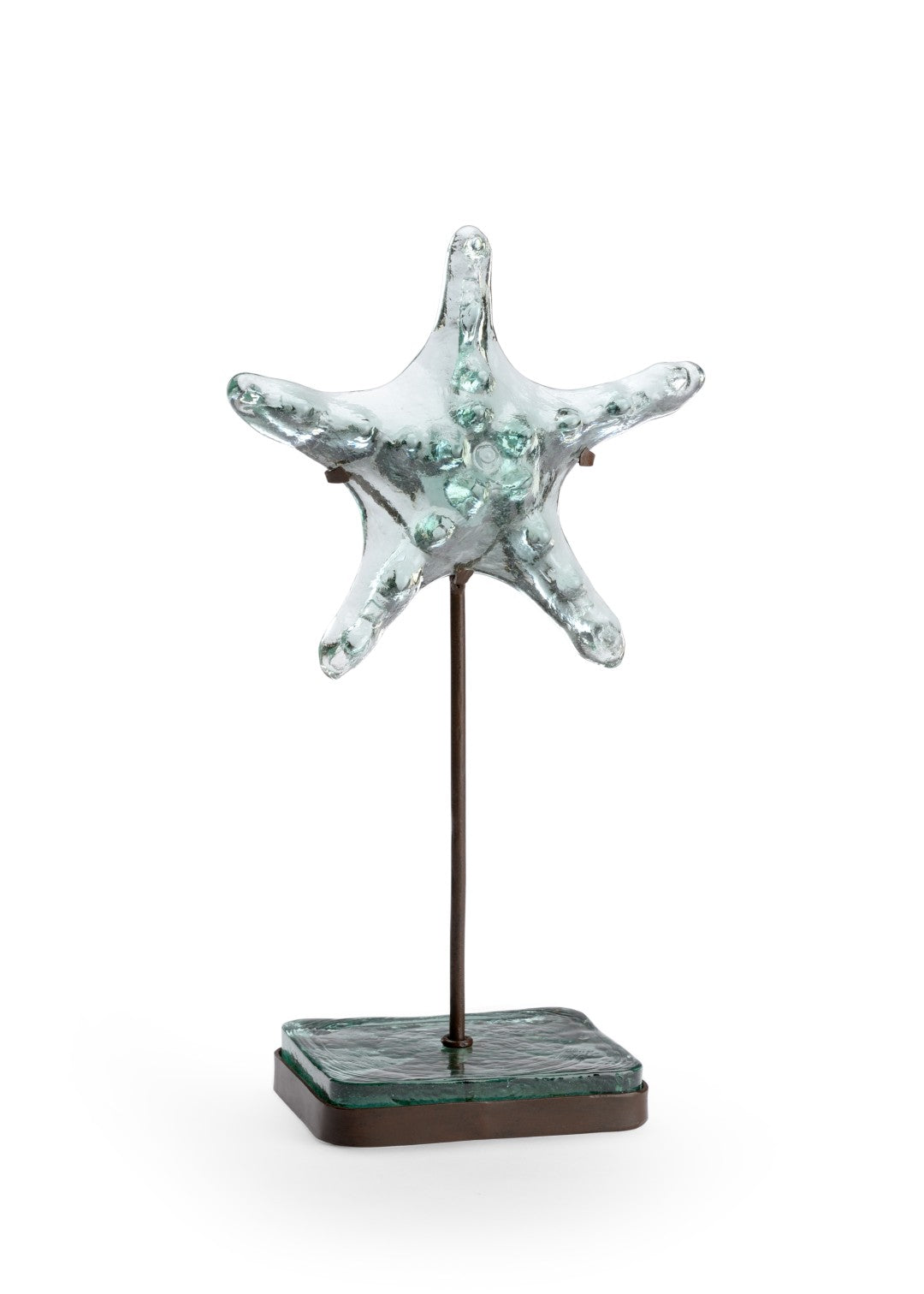 Bright and coastal-inspired, this medium starfish sculpture combines recycled green glass with a rust-finished iron stand to add artisanal texture and seaside charm to any room. Its balanced silhouette and sustainable materials make it a versatile accent for shelves, mantels, console tables, or grouped with other decorative objects to create a curated vignette.