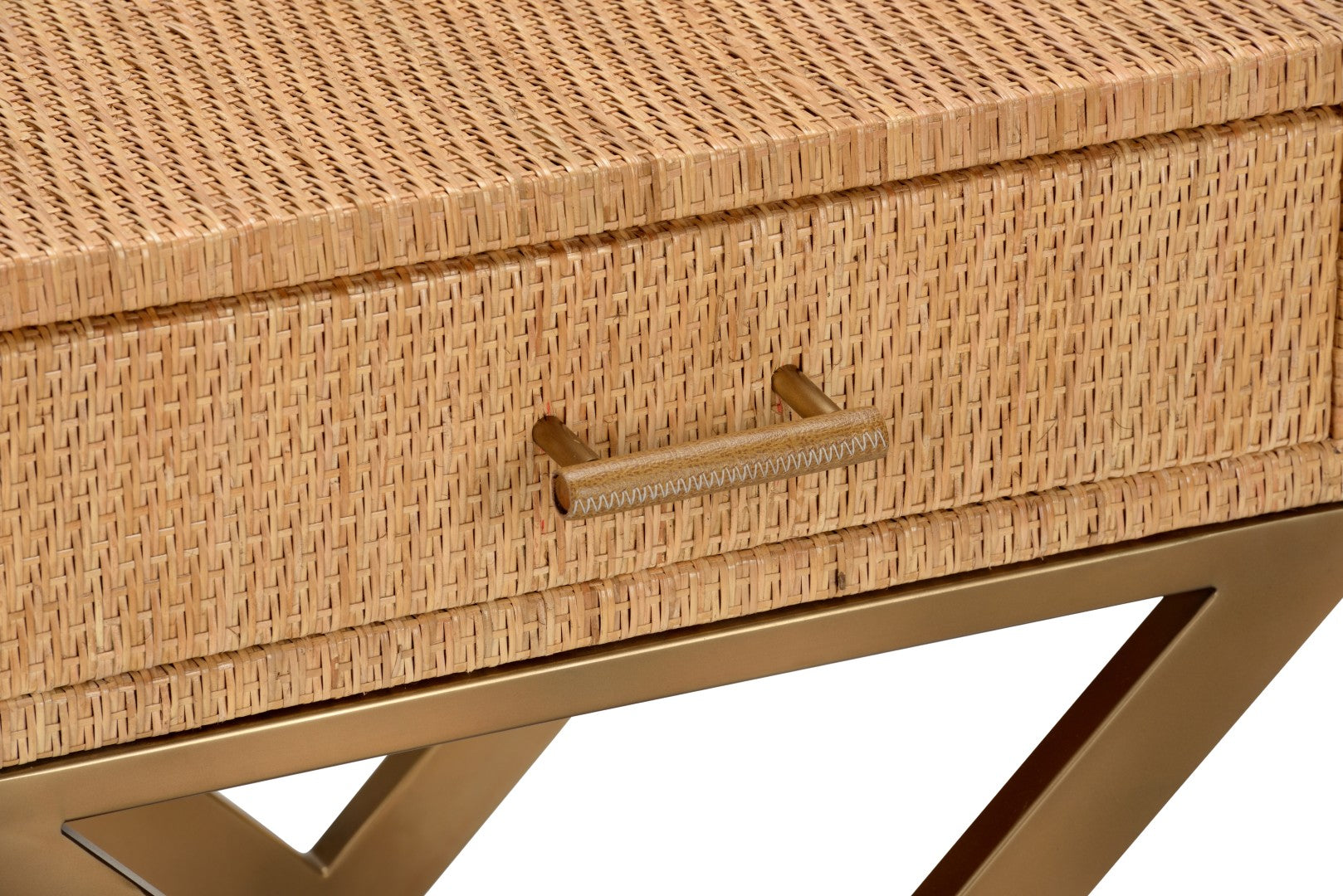 Bring effortless coastal charm to your living room or bedroom with this versatile end table, crafted to blend modern sensibilities with artisanal detail. The woven cane body and tempered glass top create a light, textured look while offering practical storage and a durable surface for lamps, books, and decor.