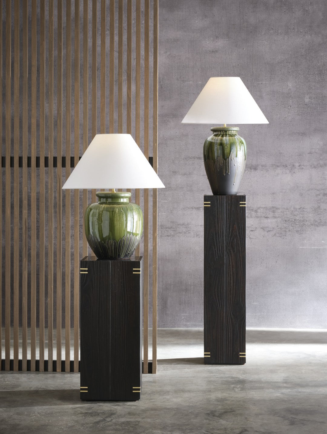 Hand-turned in one of six ancient kilns in Japan, the Yamato Table Lamp – Tall blends traditional Shiga craftsmanship with refined contemporary design. Rich, organic variations in the glaze—derived from Shiga soil—give each lamp a unique, artful finish. Paired with cloth-covered wiring and a rolled-edge linen shade, this lamp provides warm ambient light and a distinctive focal point for living rooms, bedrooms, or office spaces.