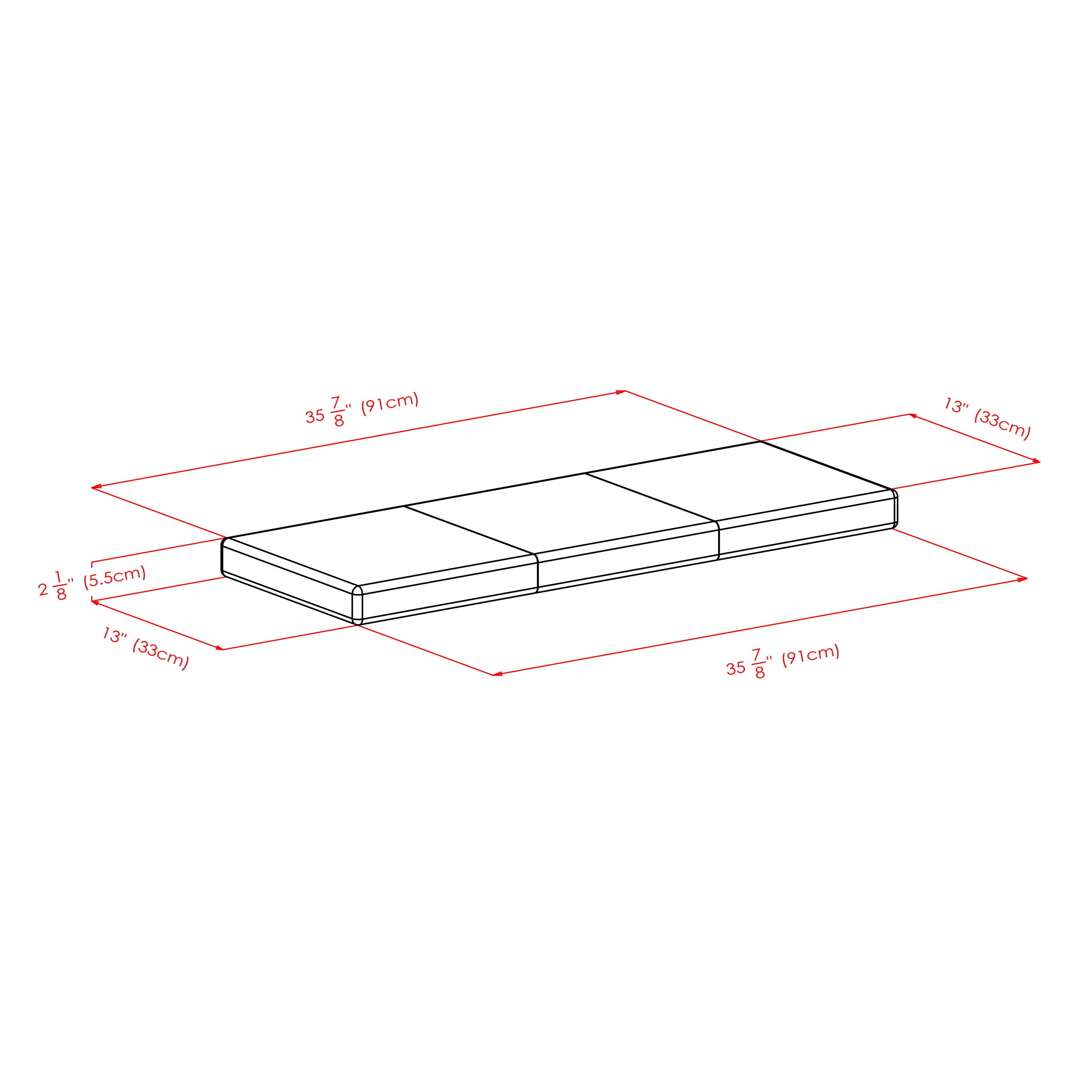 - Overall size is 38"W x 14"D x 22"H