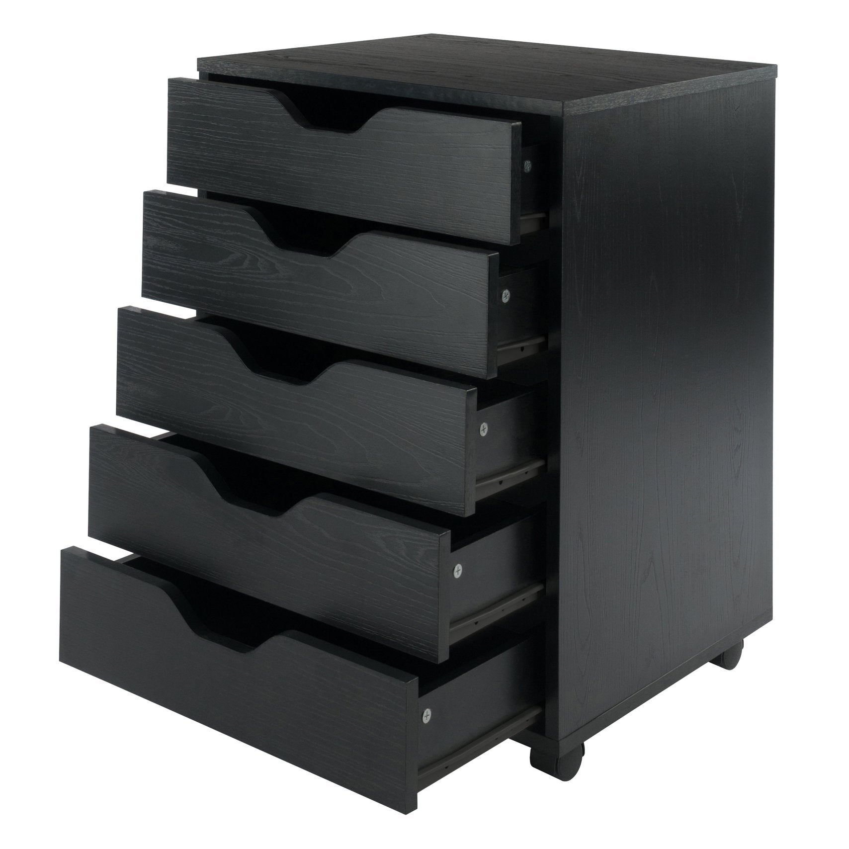 Halifax 5-Drawer Black Cart feature sliding drawers for easily accessible storage in your home office, kitchen or craft room. Optional locking casters to use them with or without casters for stationary or mobility storage.