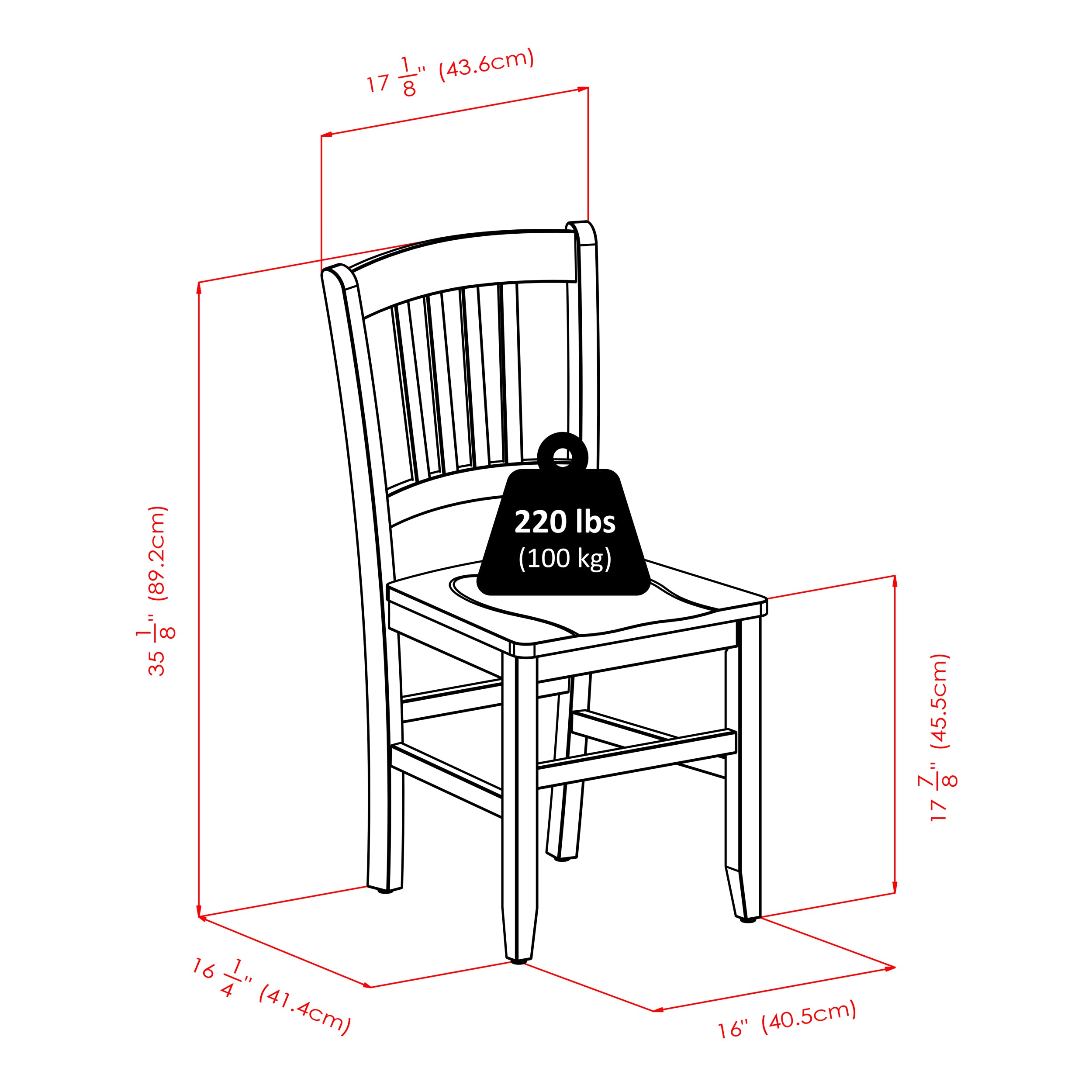 The 2-piece Madison Chair set is a perfect addition to your dining room or kitchen. The graceful rainbow arches of the chair backs add a sweet touch to traditional design. The chairs, finished in a rich Walnut, will complement any décor. Made of solid wood for stability and durability. Overall size is 34.6"H x 17.1"W x 19.25"D.