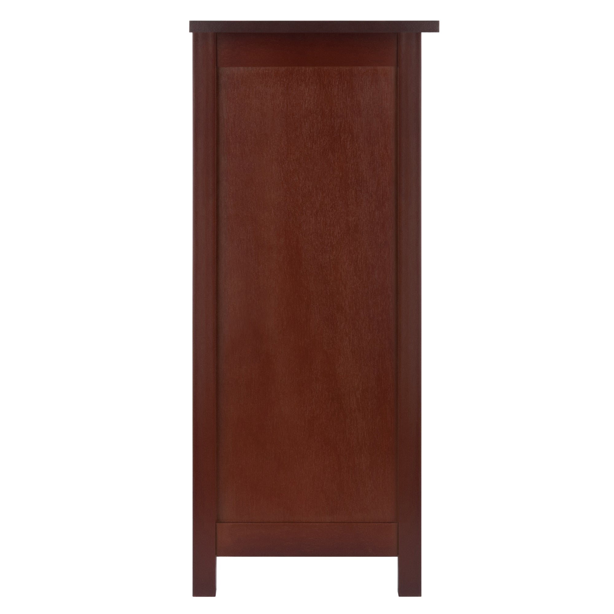 - Made with combination of solid and composite wood in Walnut finish. Assembly Required.