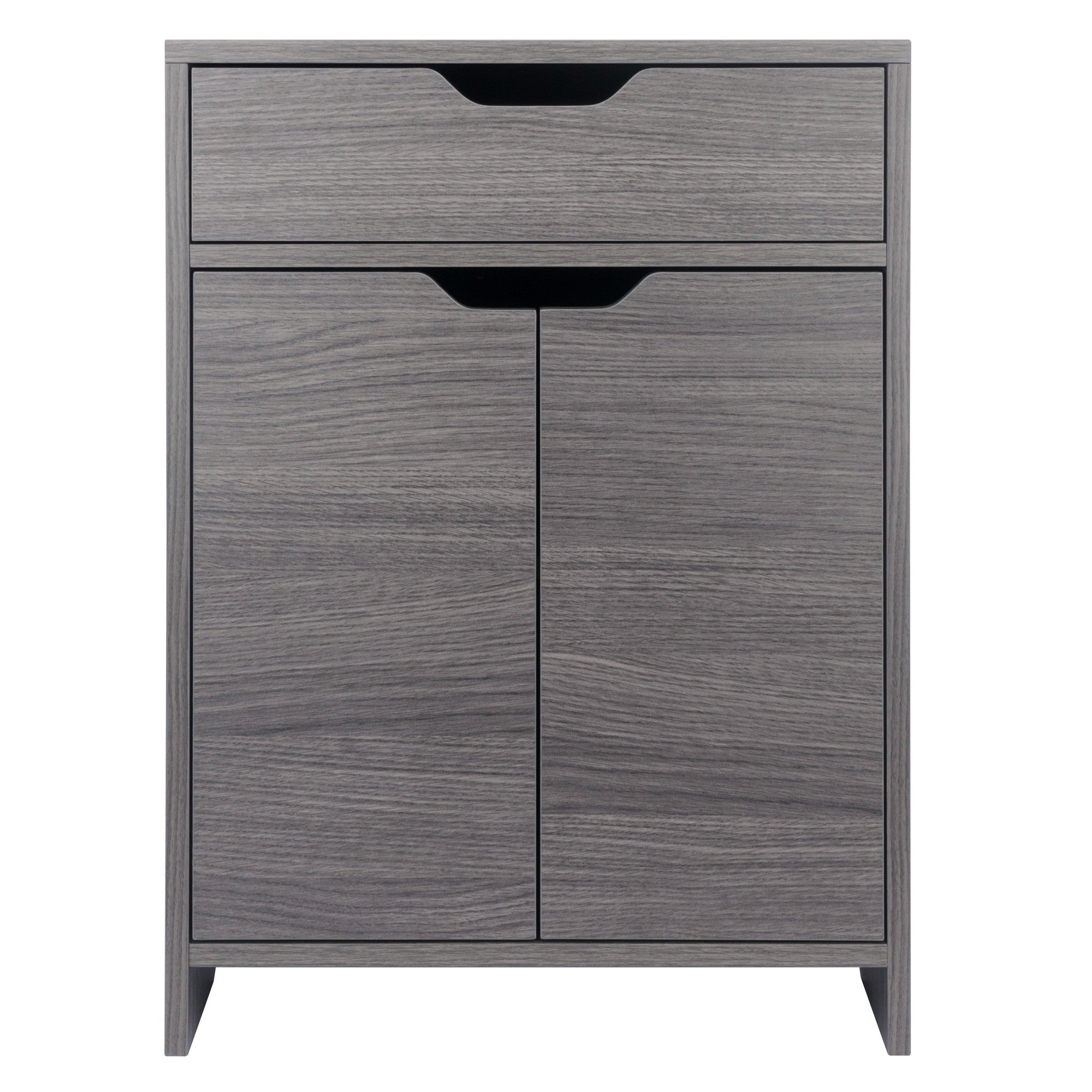 The Nova 2-Shelf Storage Cabinet with Drawer offers a contemporary, streamlined look in storage for any room. Made of sturdy composite wood in a Charcoal finish, the Cabinet has a drawer and an adjustable, removable shelf, making it adaptable to a variety of storage needs. Use it in a home office, craft room, bedroom or garage, wherever you could use stylish and simple storage.
