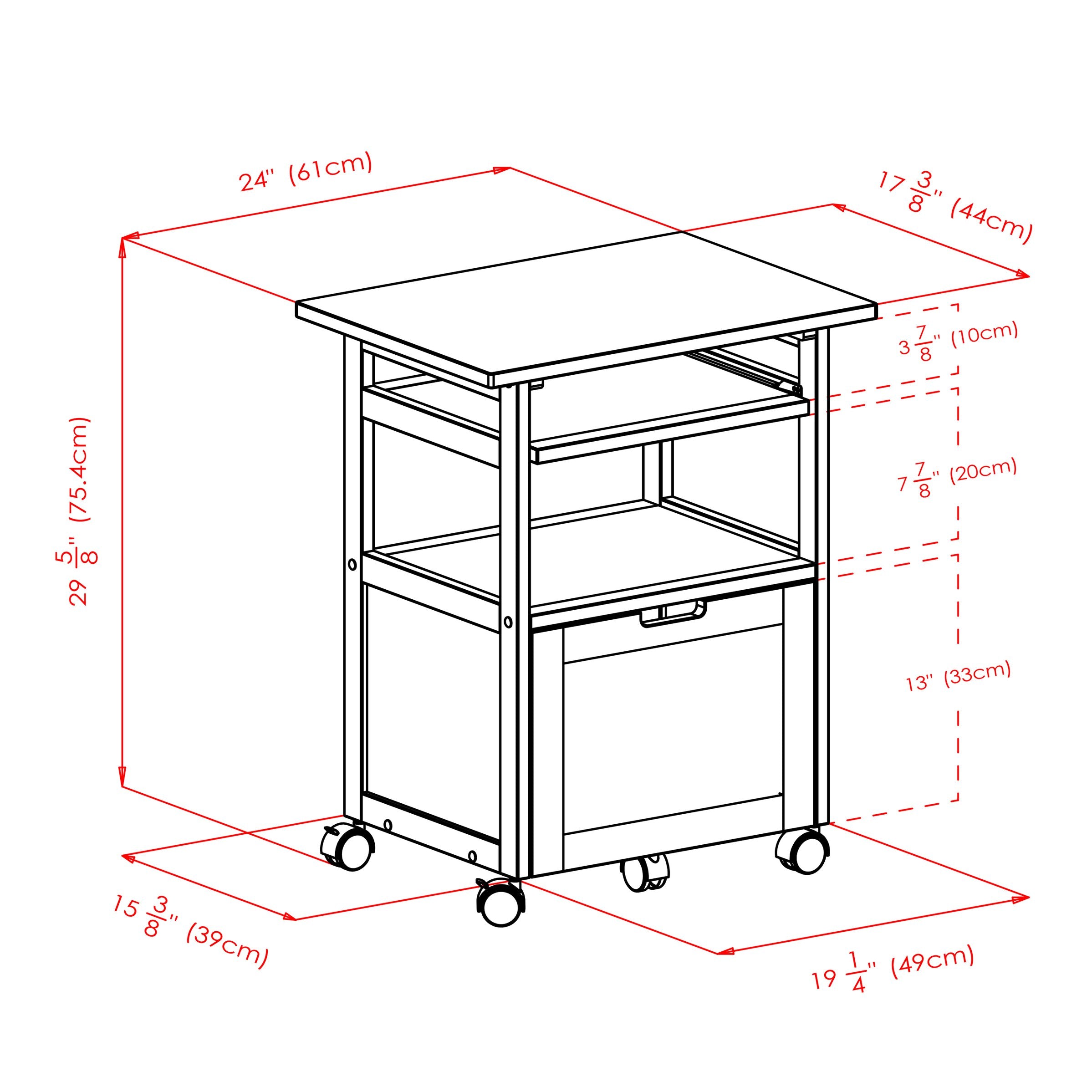 Piper embraces productivity and flexibility in this compact multipurpose workplace or storage solution on wheels. Includes a pull out tray, large open shelf, and pull out draw that can be used as a filing cabinet or general storage.