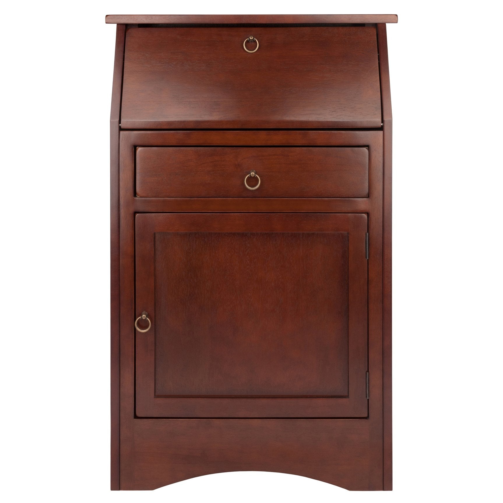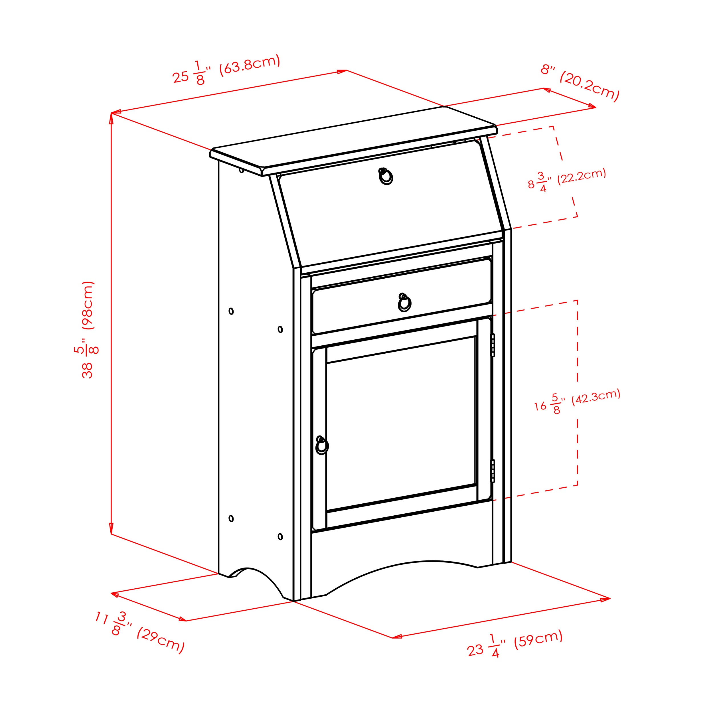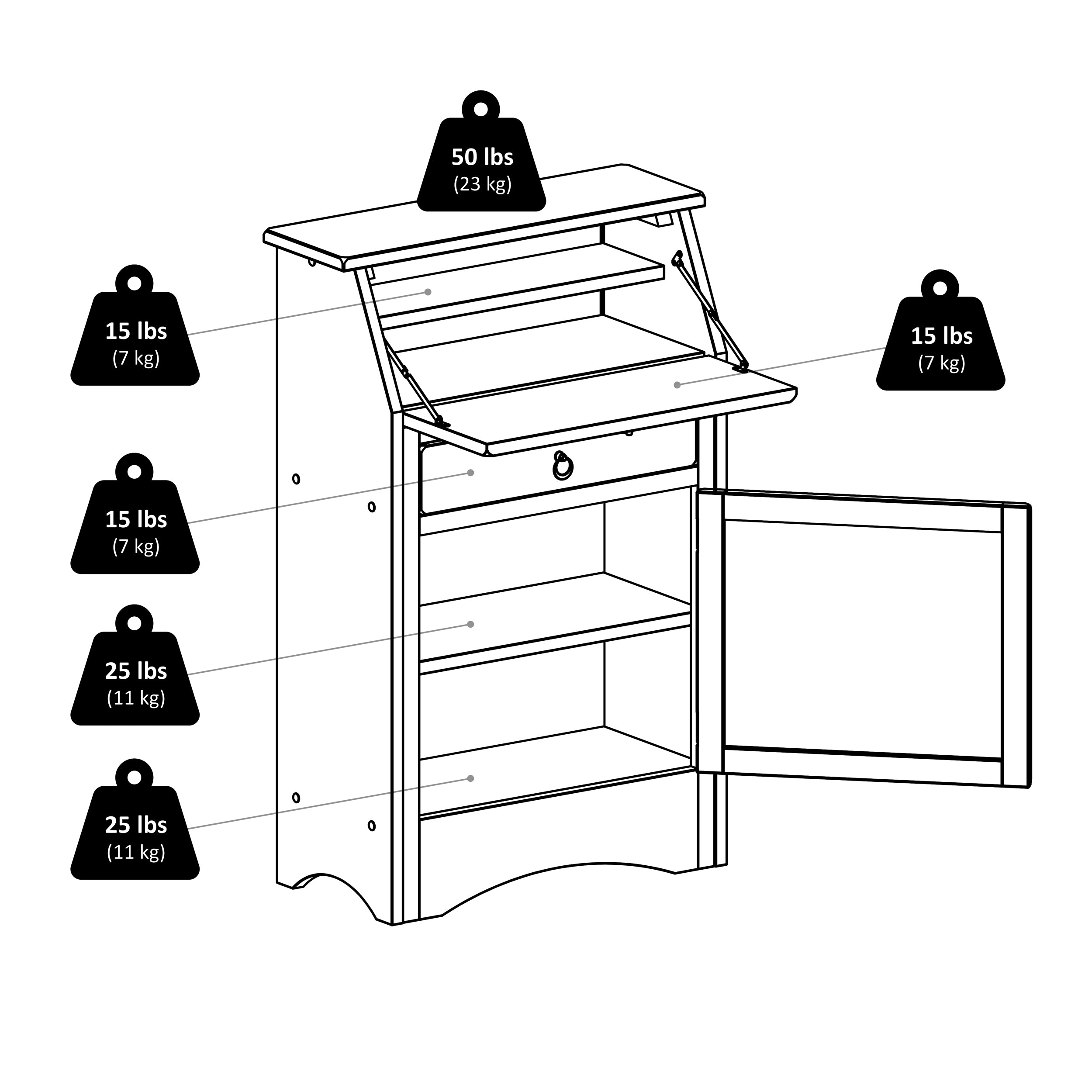 An elegant traditional design to a multifunctional secretary desk that can fit almost any room in the house. The cabinet door opens to two inner shelves and the fold down table makes a great writing surface and also hides papers and supplies once it's folded up.
