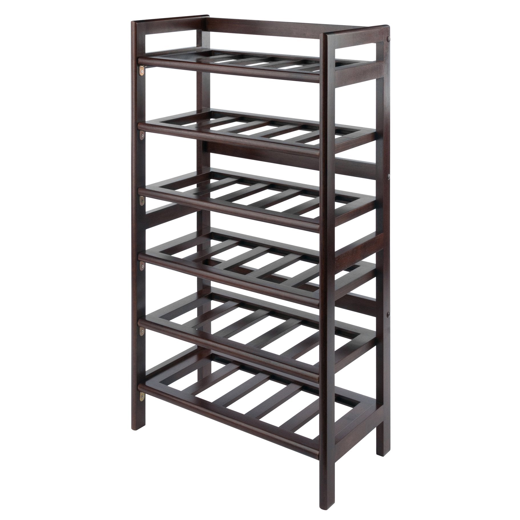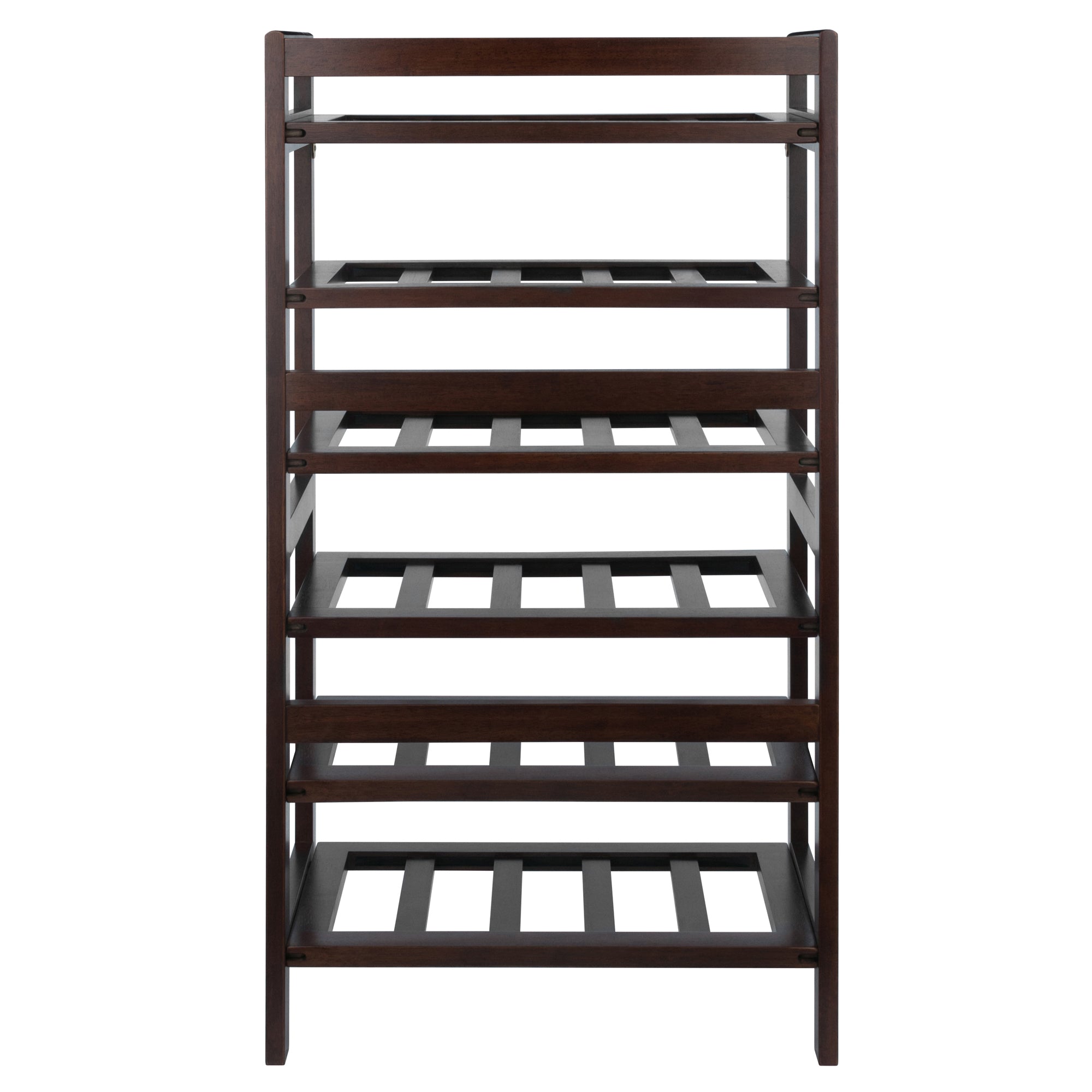 Modest styling and sturdy construction are featured in the Silvi Wine Rack. Made of solid wood in a lovely walnut finish, the rack has 6 Tiers that will hold up to 30 bottles. This classic wine rack will suit any decor, and its back and side crossbars give it balance and stability.