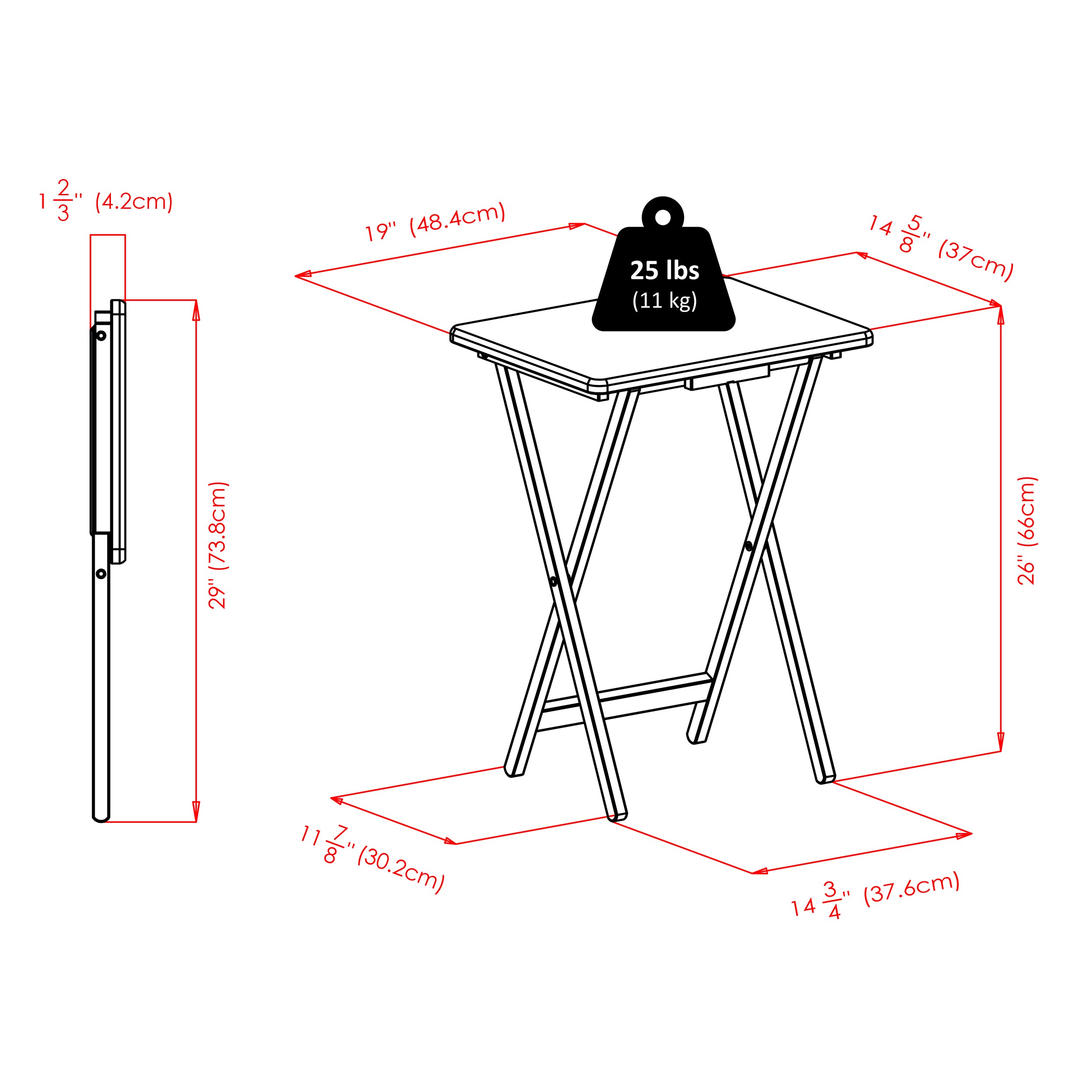 - Snack tables store securely in grooved slots