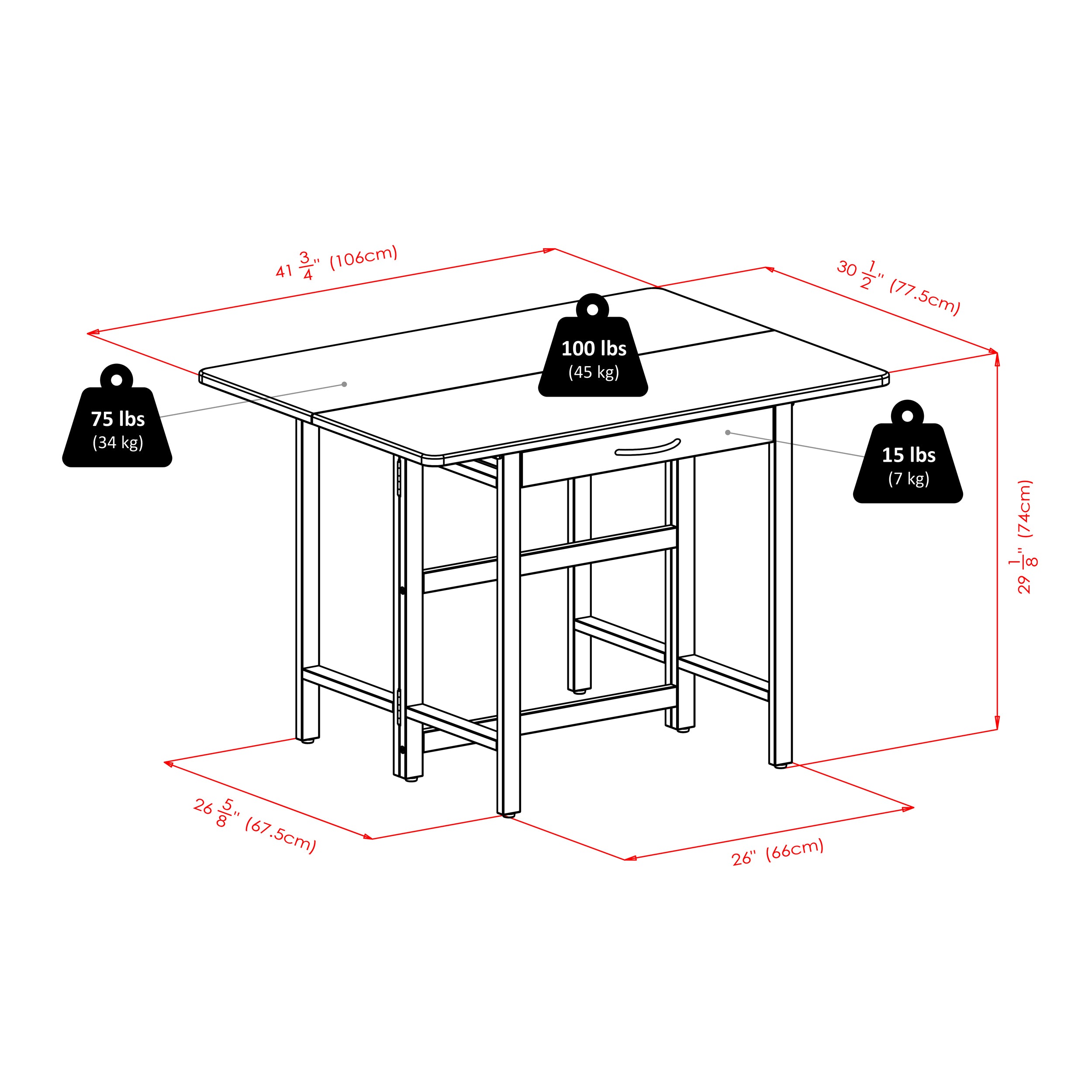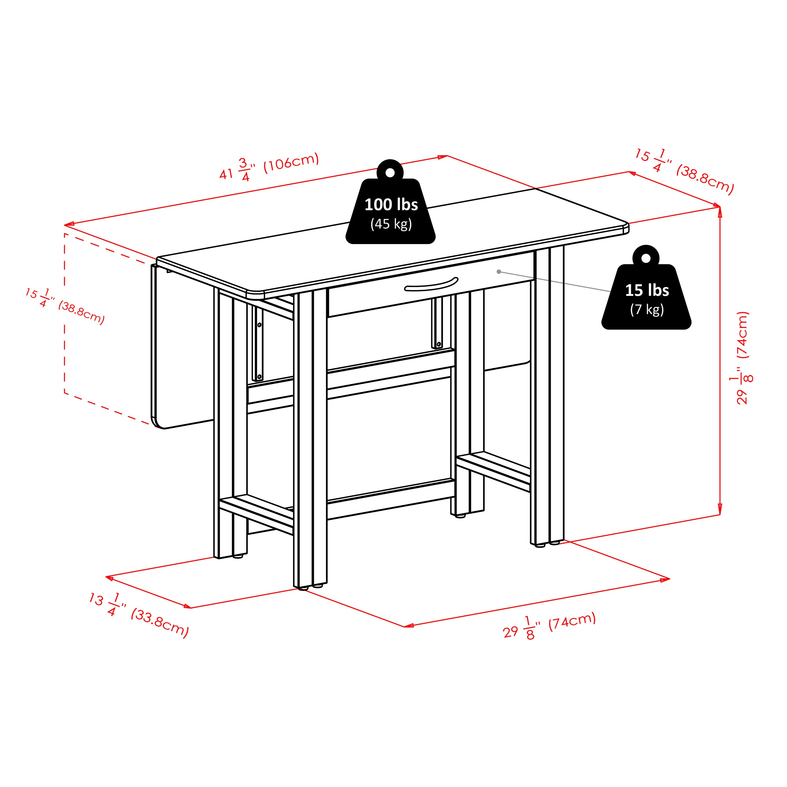 This 3-piece Taylor Drop Leaf Table Set features an elegantly simple and versatile table with two solid wood Hamilton Chairs. With the drop leaf extended, the table is doubled in size and perfect for dining in the kitchen or breakfast nook. Use the table as a console with the drop leaf down. Or make the set an ideal addition to the family room to spread out games or a puzzle. The table-wide drawer provides storage for silverware, placemats, games, or personal electronic devices. The table top and frame are made of solid wood for long lasting durability. Overall size with drop leaf extended 41.7"W x 30.5"D x 29"H