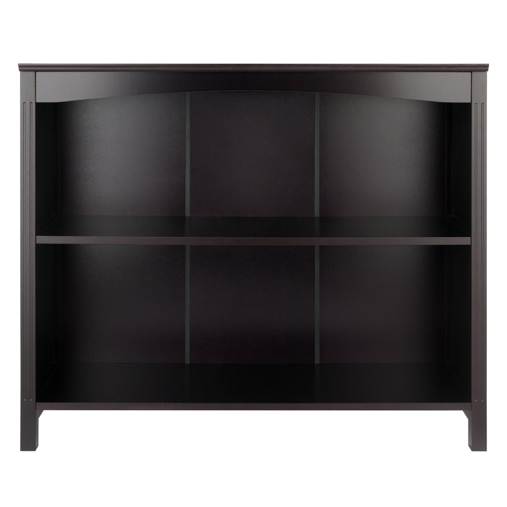 A gently curved apron and grooved front legs add a subtle, yet distinctive touch to the Terrace 2-Section Wide Bookcase. Perfect for keeping books and/or displaying collectibles, use it in the living room or home office. Made of solid and composite wood in a rich espresso finish.