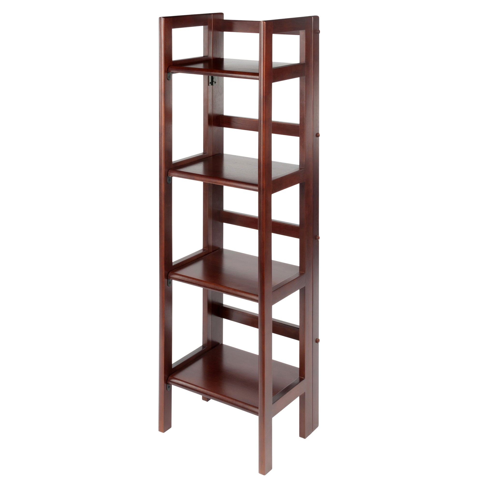 There are unlimited storage possibilities for this 4-tier Tall Folding Shelf. Double stack this shelf to create a tall storage shelf. Organizing your bathroom, kids or office just got easier. Open and airy bookshelf design.