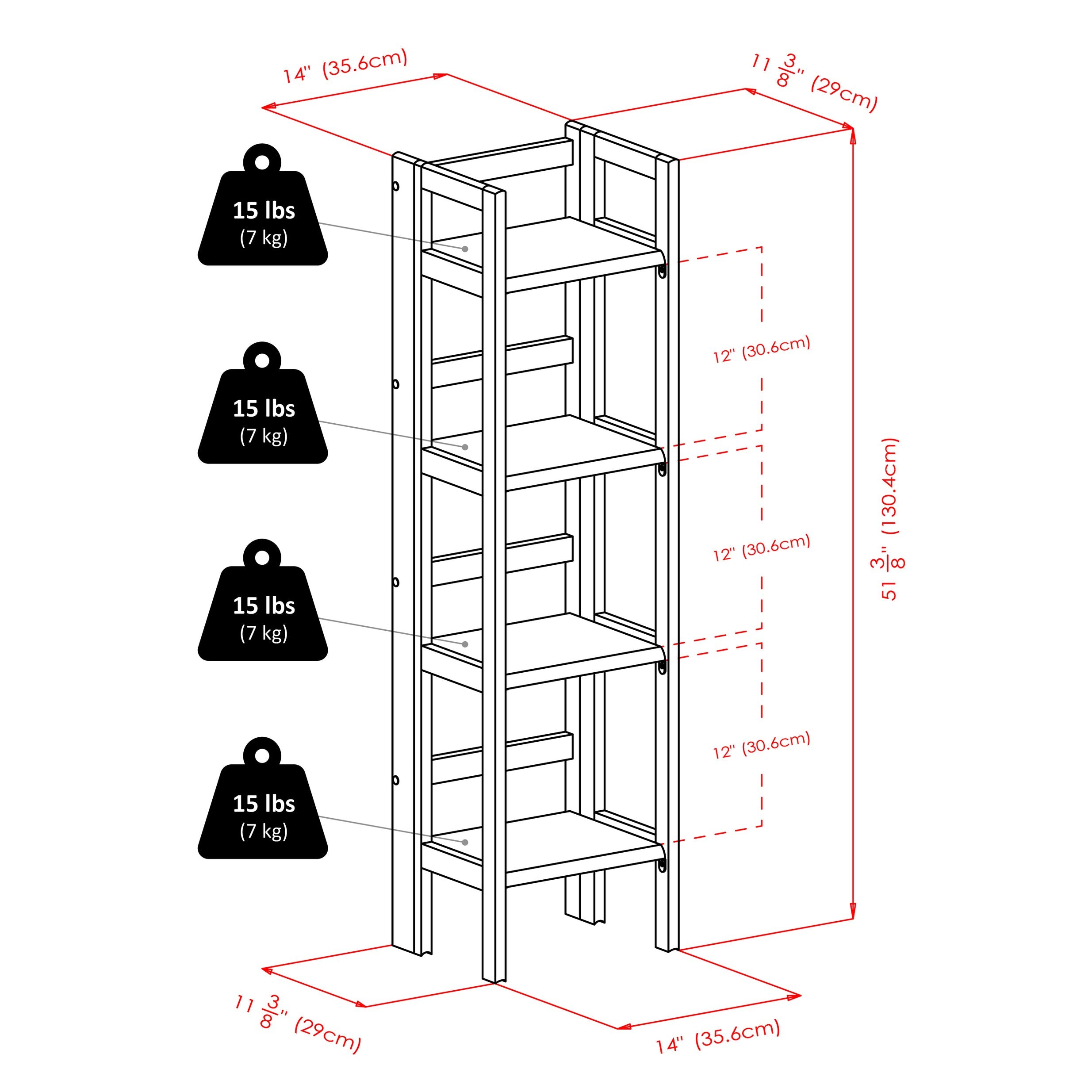 - Overall Shelf Open size is 14.00"W x 11.40"D x 51.34"H. Folded 14.02"W x 3.15"D x 54.65"H
