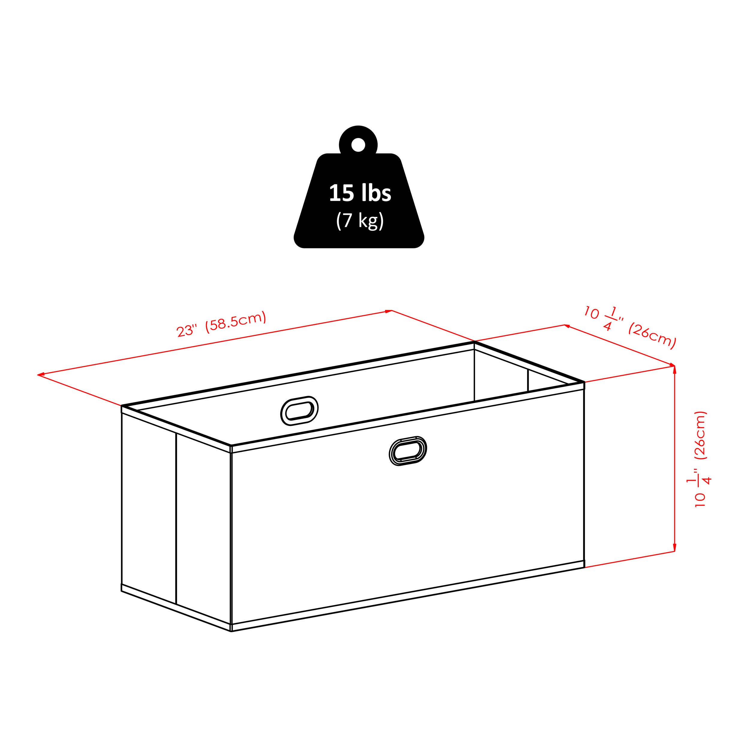 Keep your shelves organized and looking great with the 3-piece Torino Baskets. Store everything from sweaters, shoes, and towels to toys and games in these foldable fabric baskets. With a 10.2" depth, they fit easily on any closet shelf or freestanding shelf unit. Carrying them is easy and secure with metal ring handles. Made of fiberboard reinforced fabric in chocolate color, these foldable baskets are a perfect organizational tool. Open size 23"W x 10.2"D x 10.2"H.
