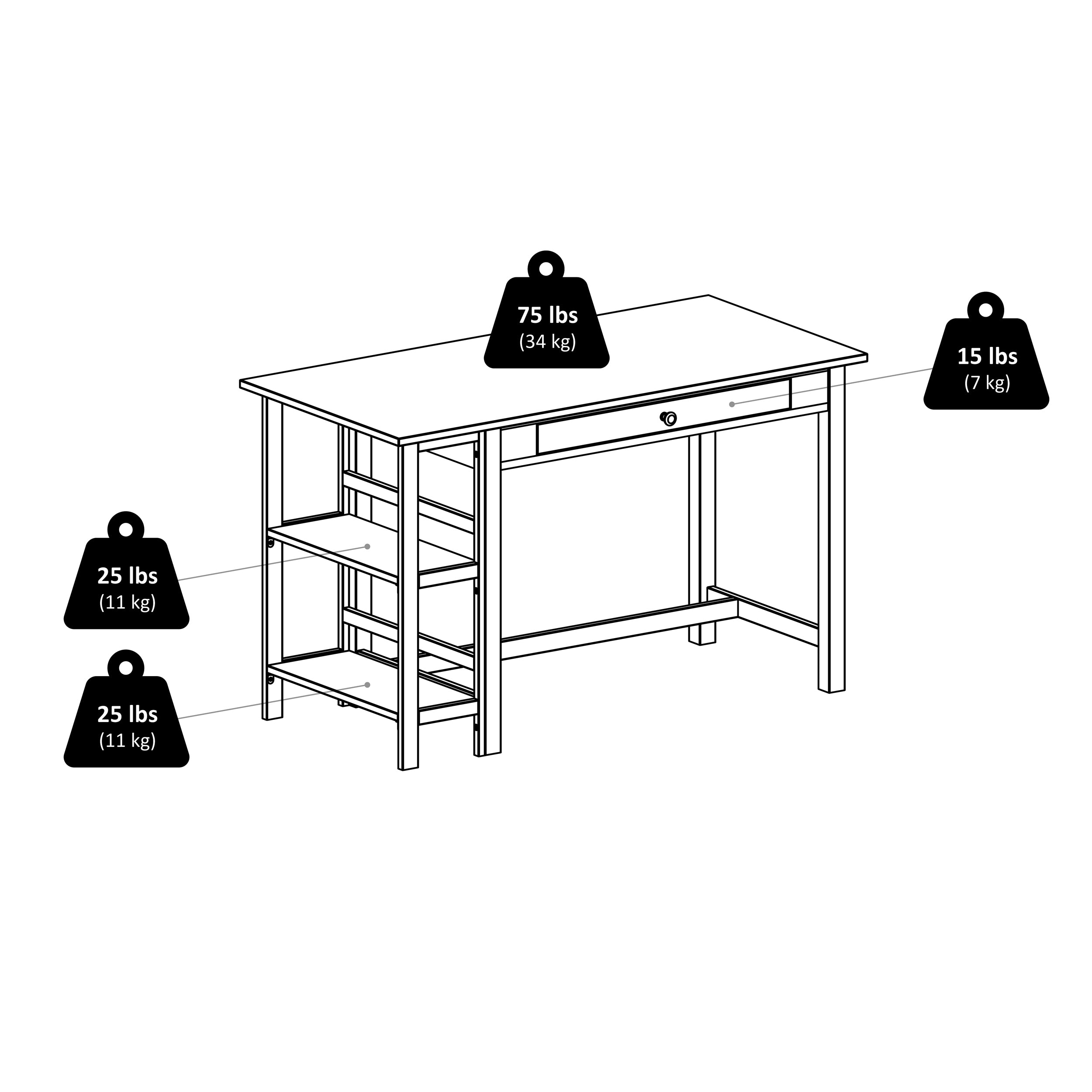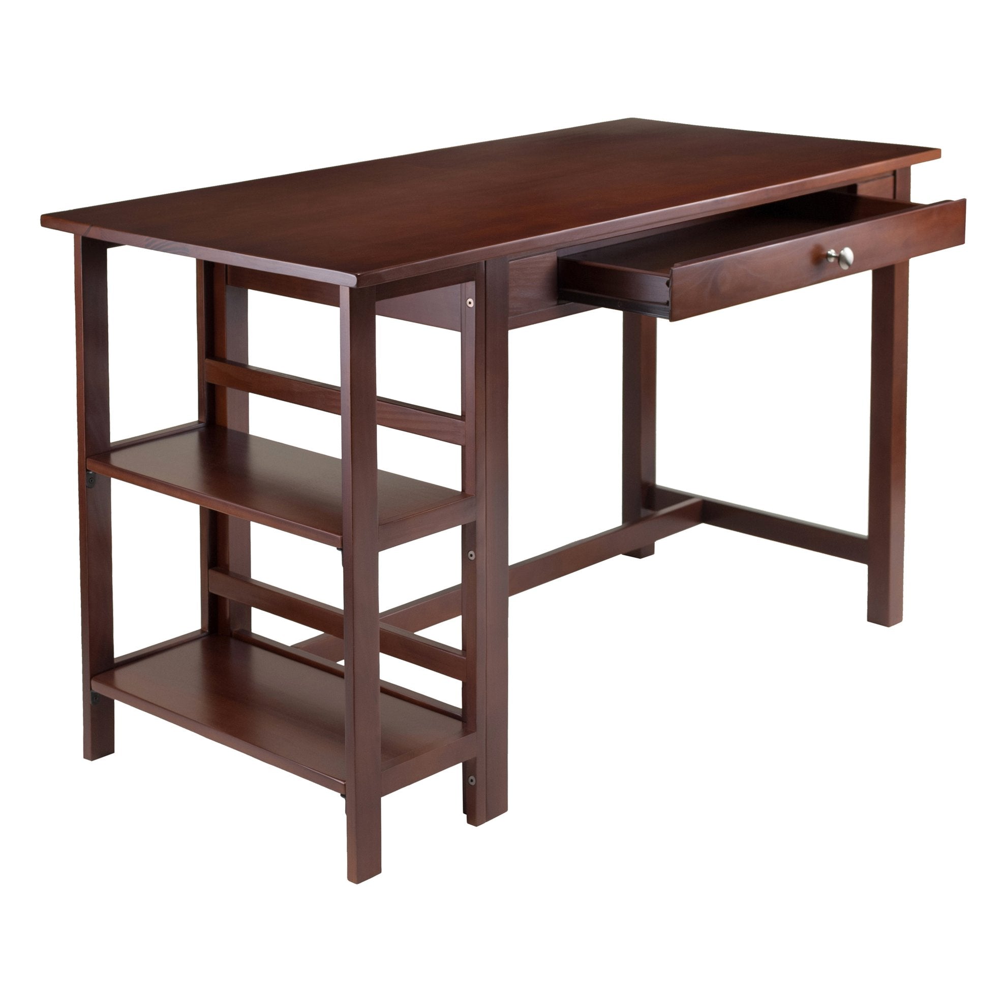 Velda working desk has large working surface with built in side storage. This desk can serve as a computer desk or writing desk in your home. The size provides for maximized workspace. The design creates a look that is both attractive and simple.