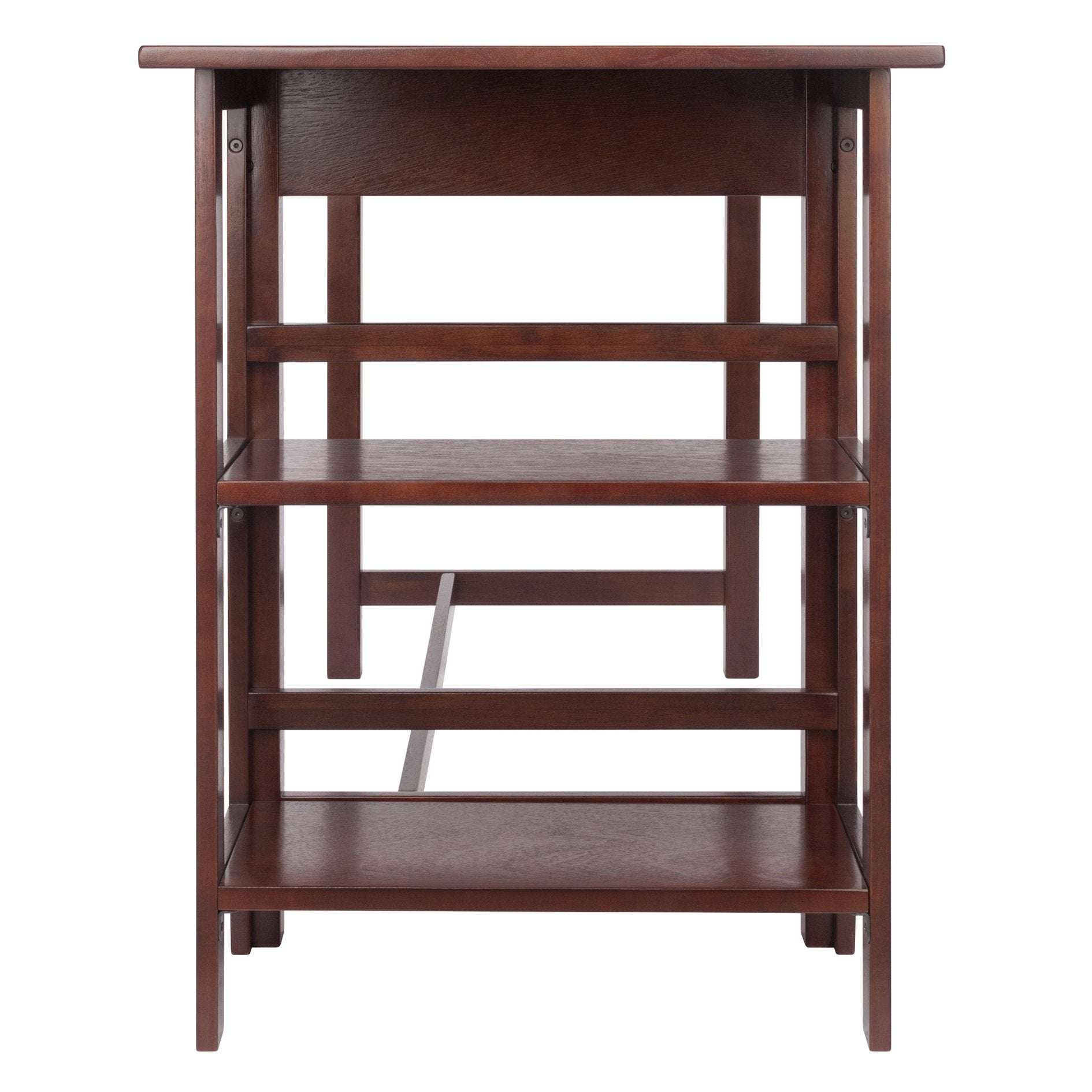 - Constructed from solid and composite wood in walnut finish. Assembly Required.