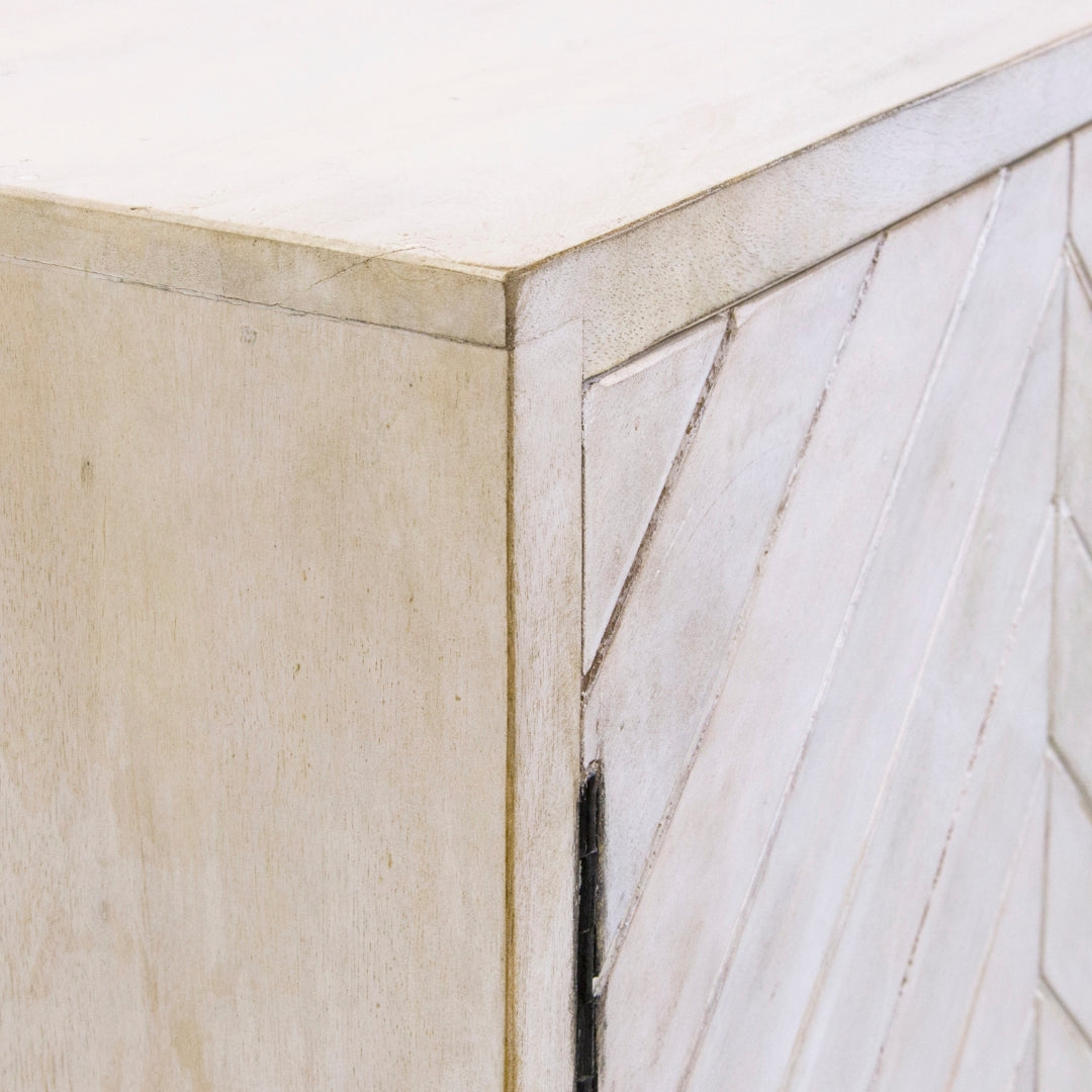 - Feature 1: Grooved Solid Mango Wood In A Chevron Pattern