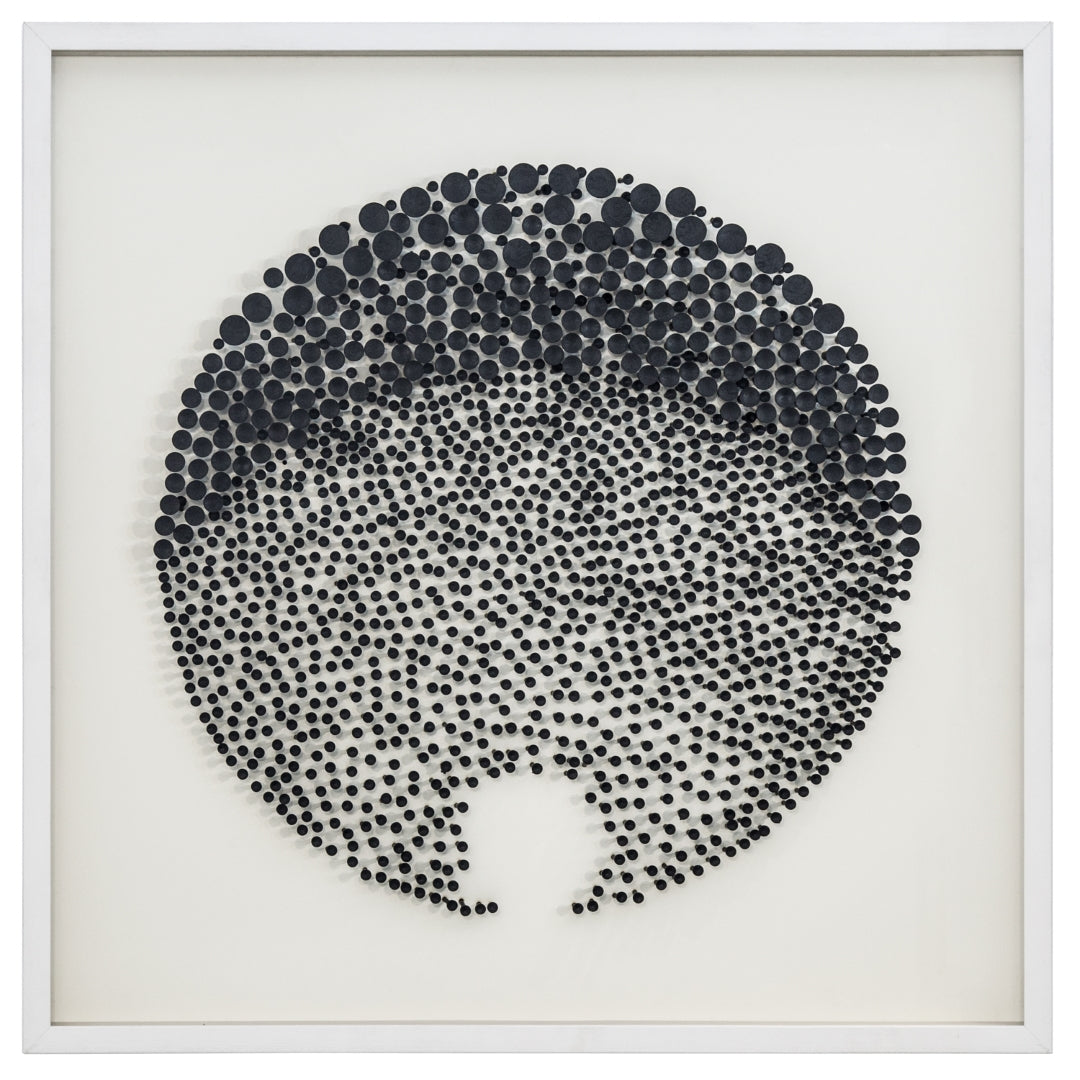 - Feature #1: Shadowbox Featuring Circular Geometric Design On A Natural Linen Background Is Created With Gold Tees