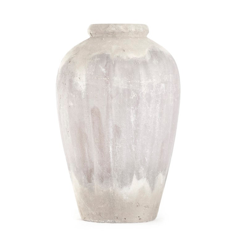 - Material: Terracotta with distressed grey wash finish for an aged, artisanal look