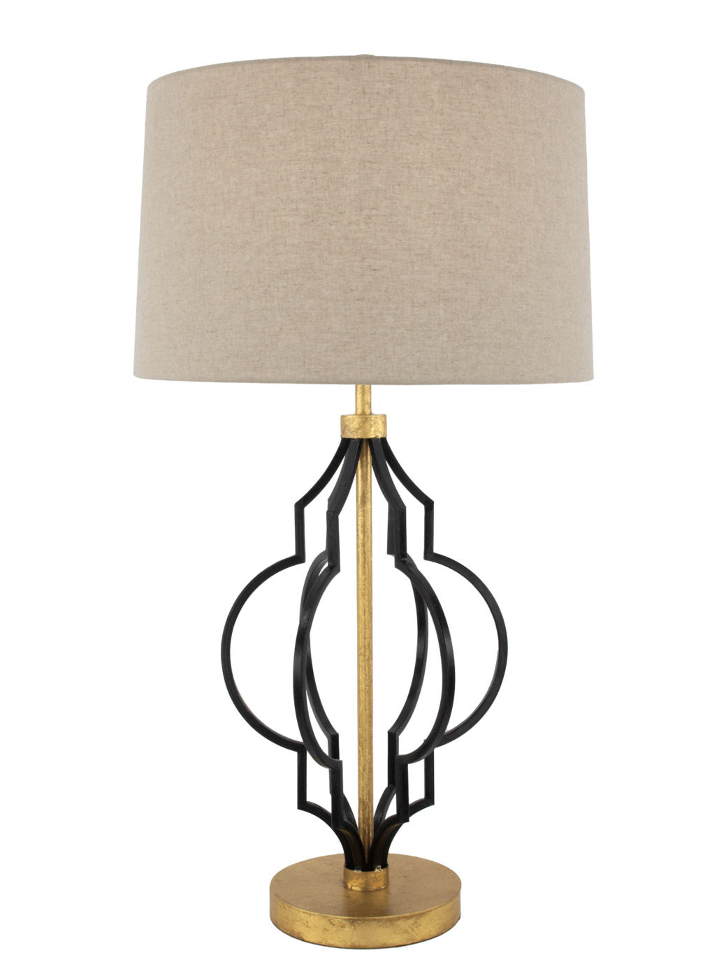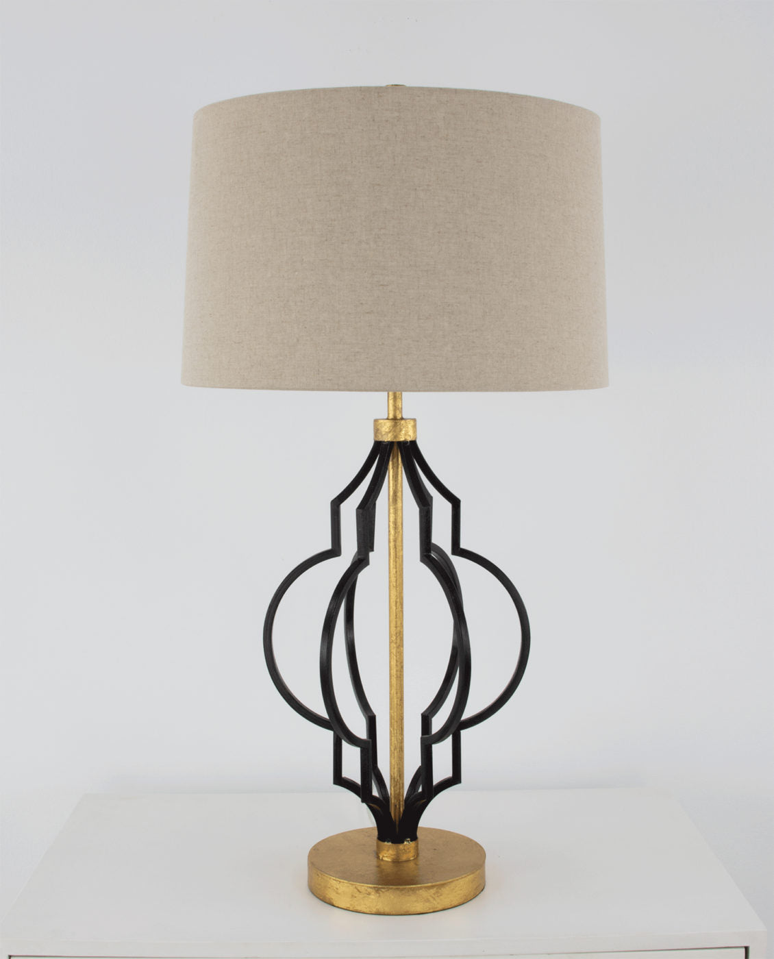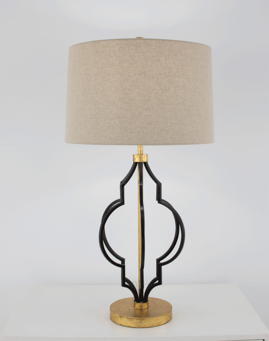 Add a geometric touch to any room with this beautiful black and gold table lamp