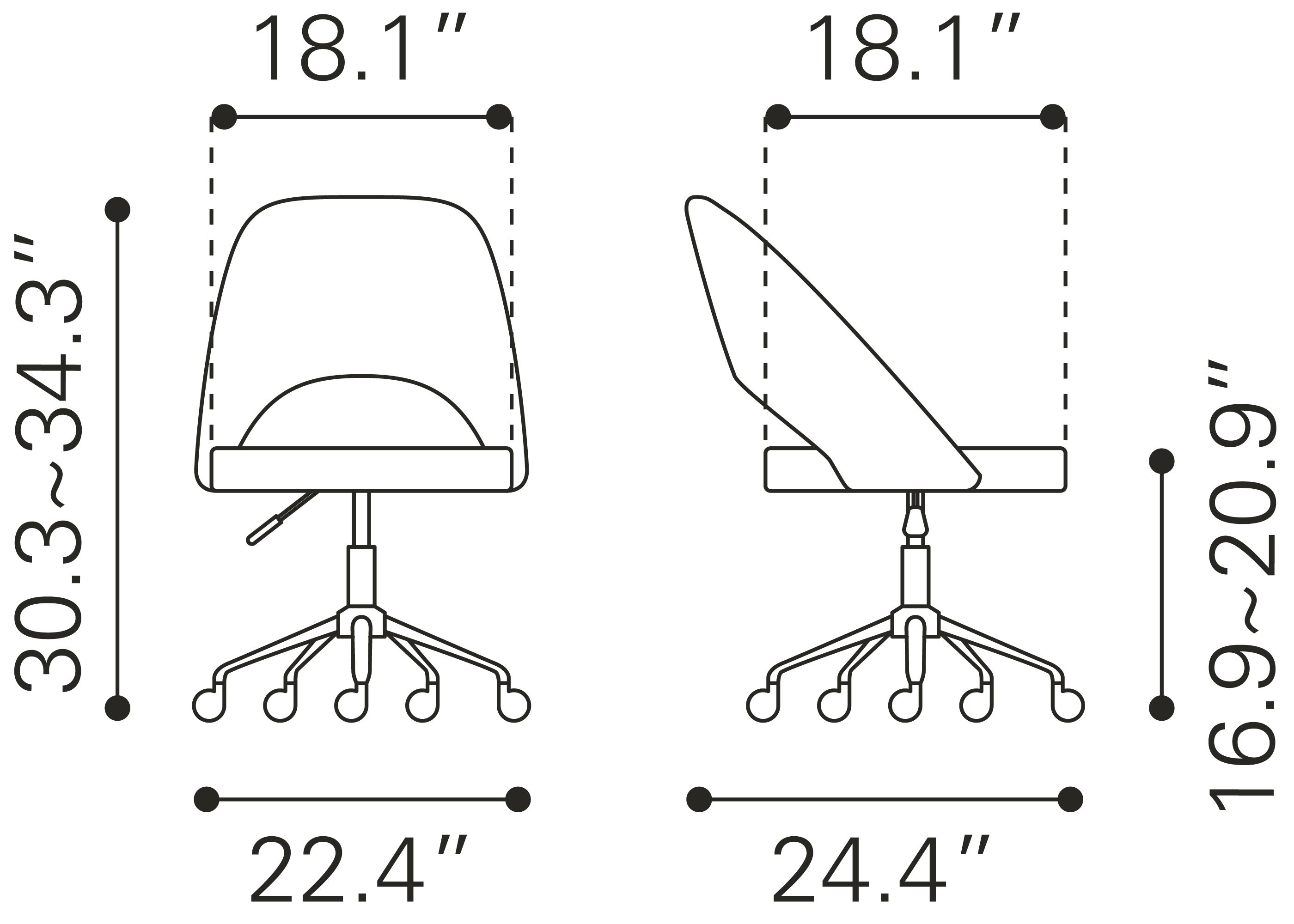 Seat Dimensions: 18.1" SW x 18.1" SD x 20.9" SH